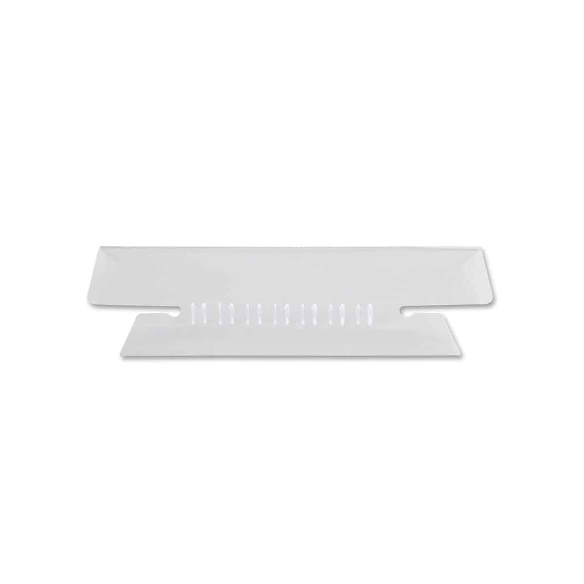 Plastique transparent. Les onglets sont angulés pour un meilleur aperçu. Avec insertions non-imprimées. Boîte de 25. Clair. 3-1/2 po