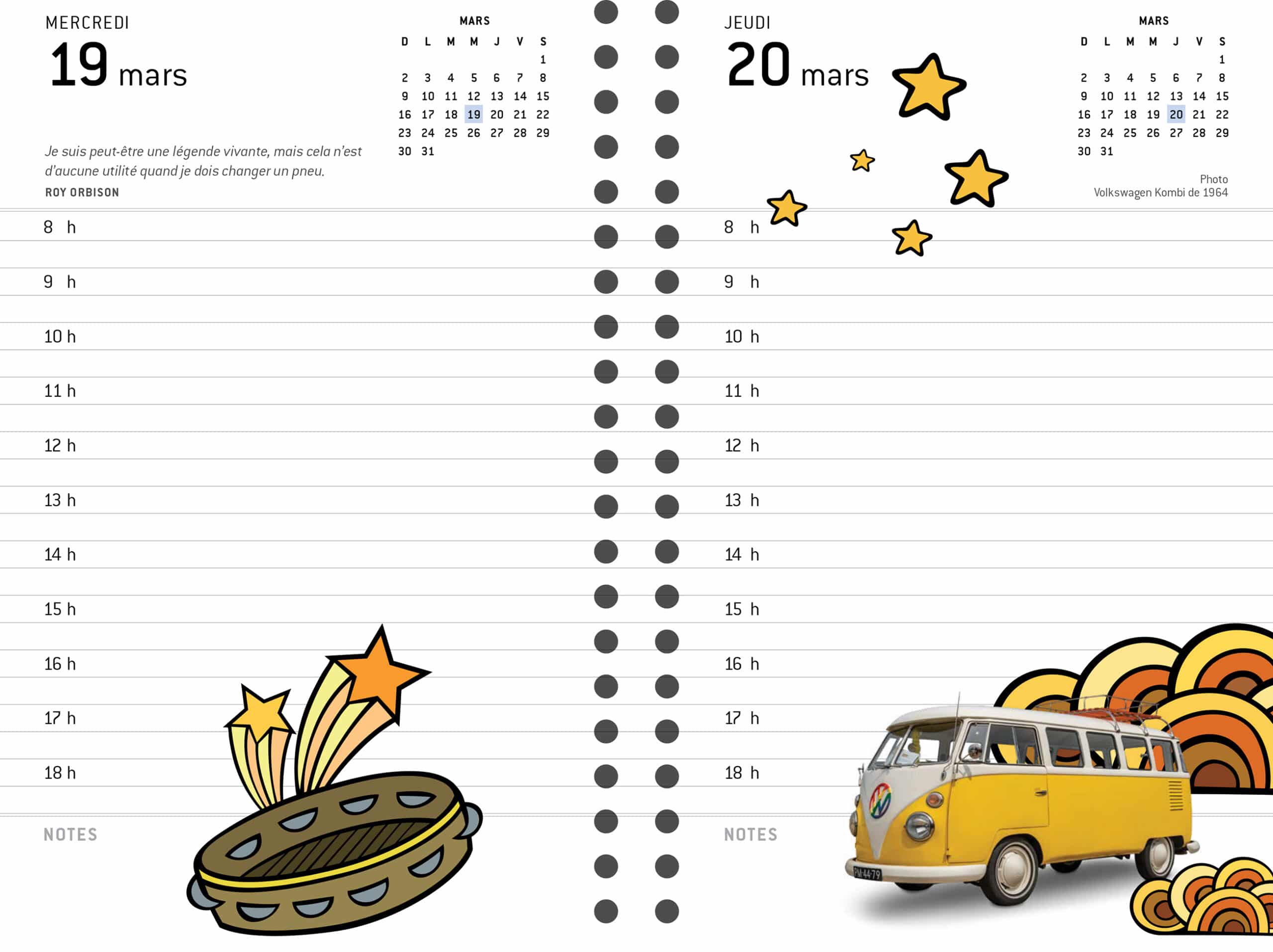 • Organisation quotidienne : une page pour chaque jour de la semaine;