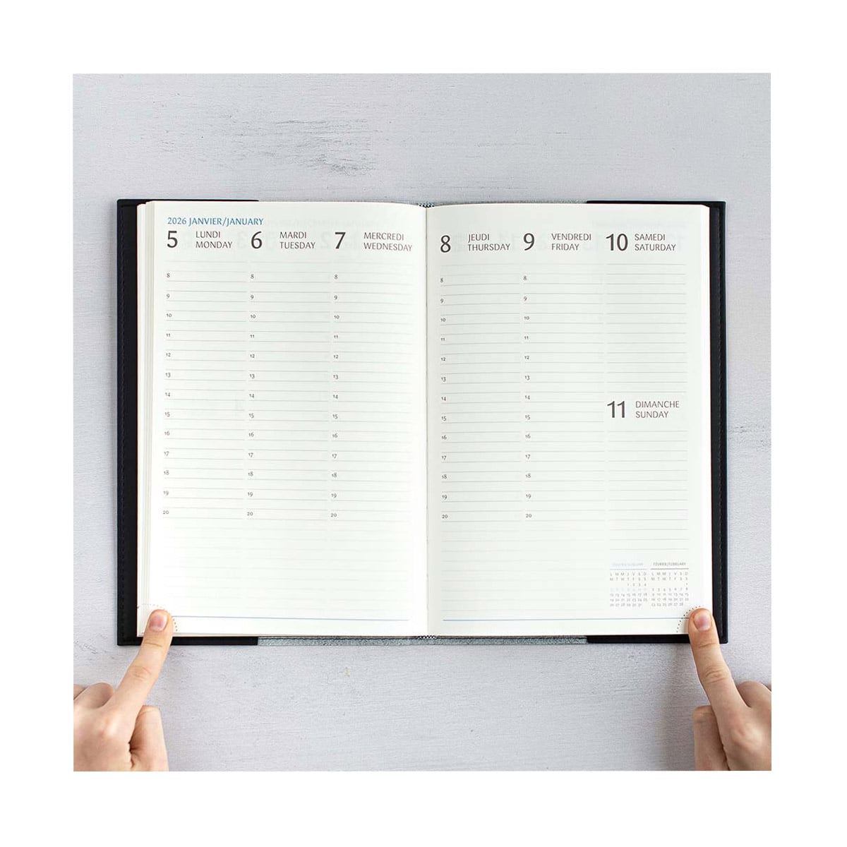 Le Gama est parmi nos agendas les plus populaires. Avec sa couverture souple et flexible, il est disponible en 6 couleurs. Idéal pour celles et ceux qui aiment avoir de l’espace pour personnaliser leur agenda : une généreuse section de notes est présente sur chaque page. La grille de 1 semaine sur 2 pages permet d’avoir un coup d’œil immédiat sur la semaine en cours. Il inclut aussi une section de planification mensuelle de 12 pages (1 mois par page) et 18 pages de notes lignées. L’agenda s’ouvre à plat et toujours à la bonne page, grâce à ses coins détachables.