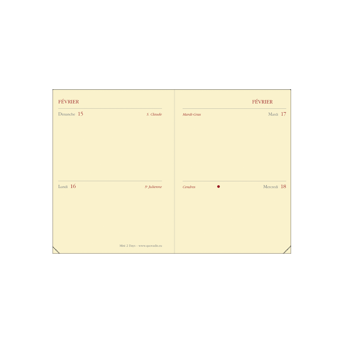 - 2 jours par page à l’horizontale avec grille ouverte favorisant la prise de notes