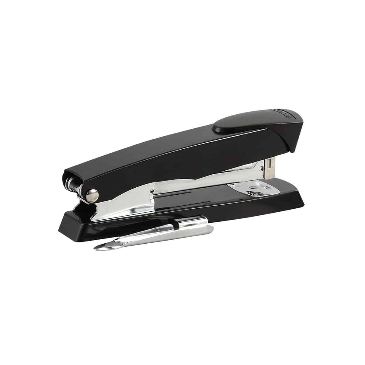 Capacité de 105 agrafes (demi-bande). Agrafe jusqu’à 30 feuilles. Construction en métal. Protection antimicrobienne. S’ouvre pour le clouage. Dégrafeuse intégrée. Noir.
