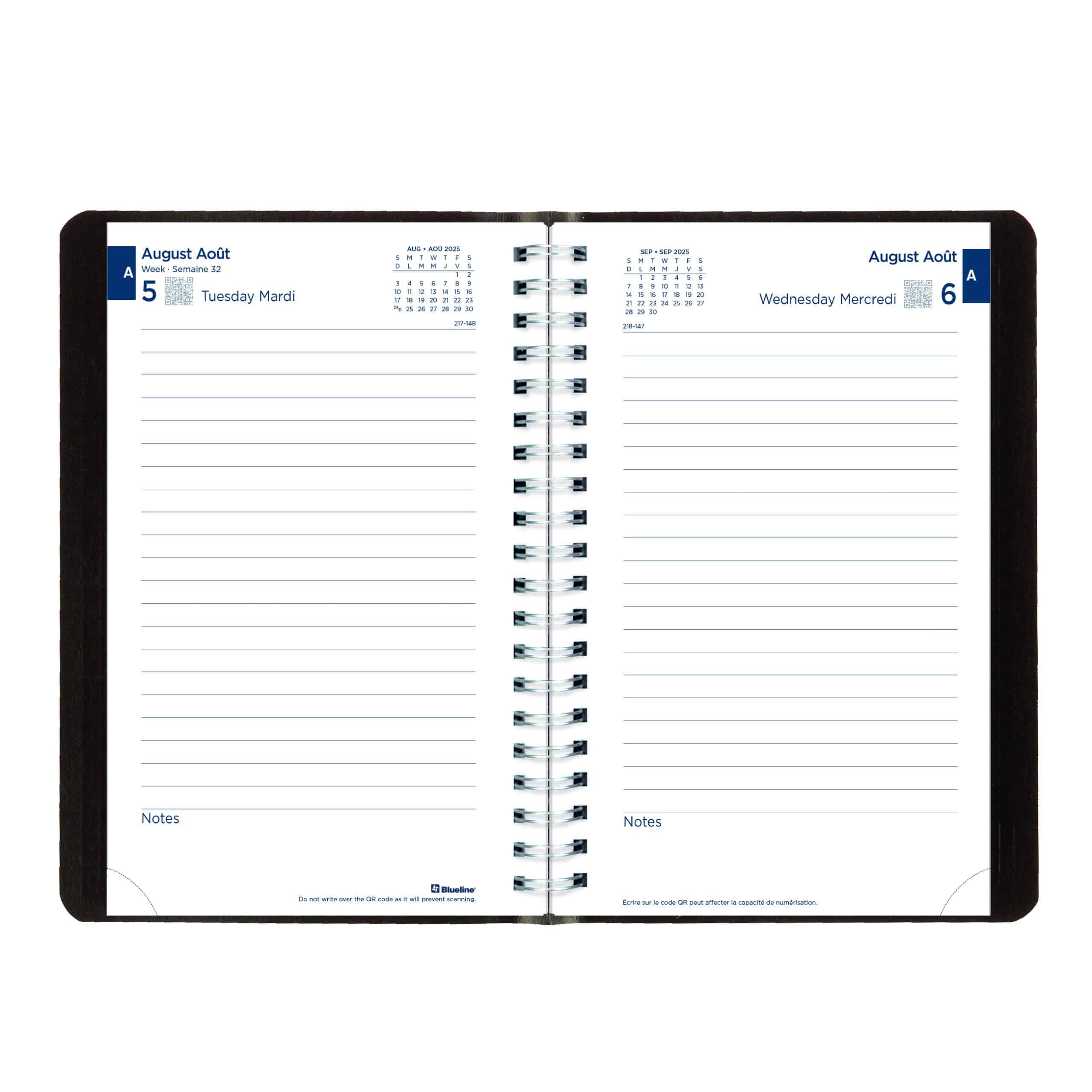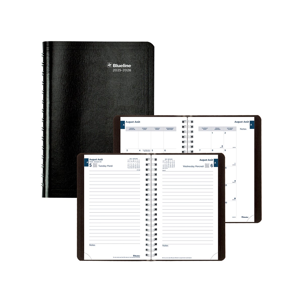 Blueline Agenda académique quotidien noir 2026-27