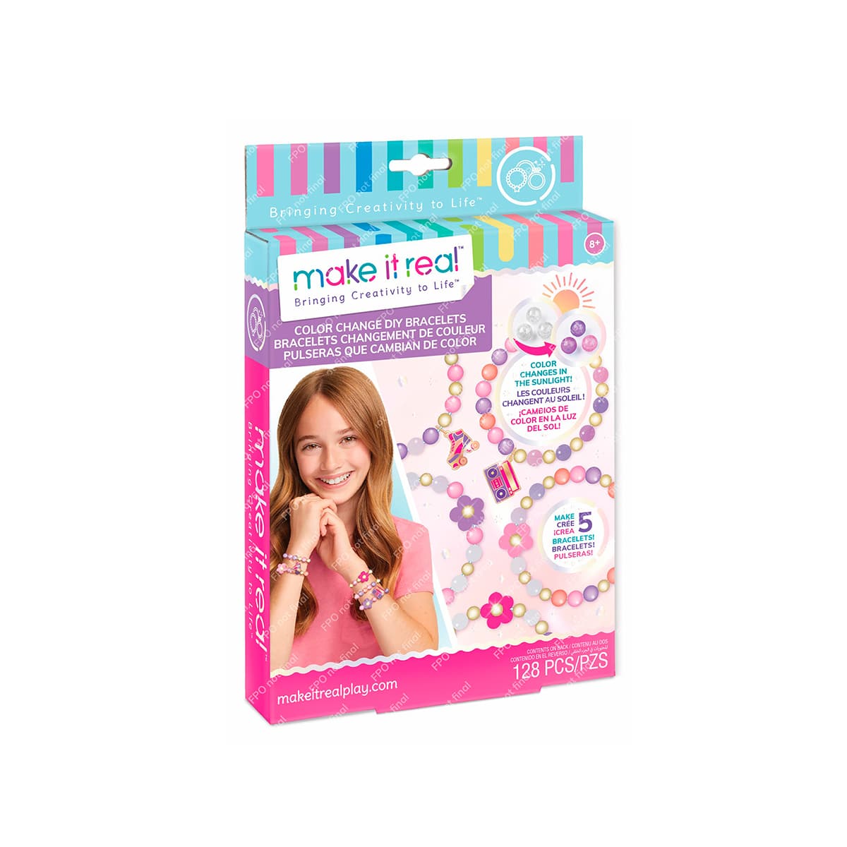 Créez 5 bracelets qui changent de couleur. Des couleurs pastel dans une lumière faible ou nulle, un peu plus d’opacité dans l’éclairage ambiant et un grand éclat de couleur lorsque la lumière du soleil atteint les perles. Une fois à l’intérieur, la couleur s’estompe avec le temps, mais redevient éclatante à chaque fois qu’elle est exposée à la lumière naturelle du soleil!