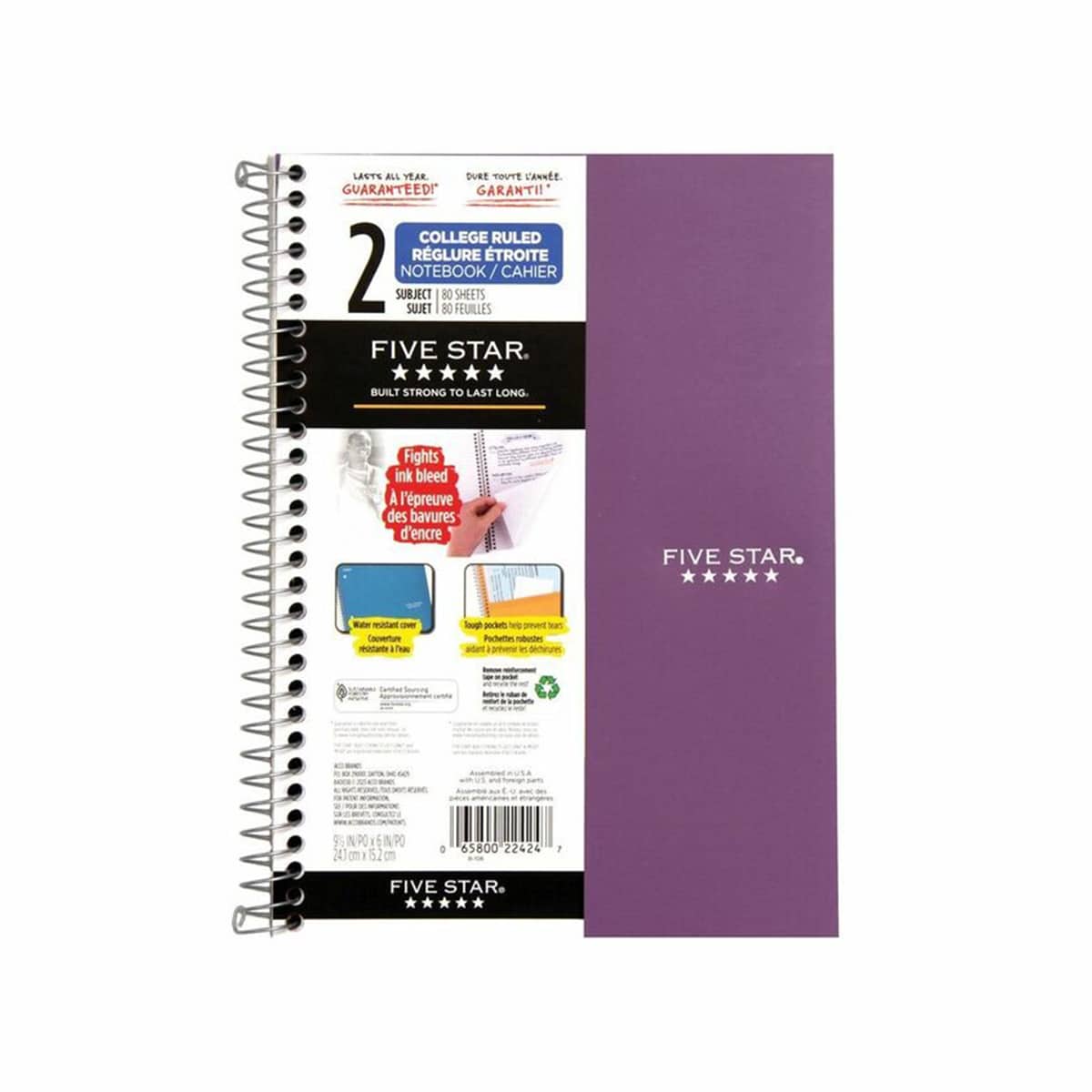 Couverture en polypropylène. Pages perforées. Pochettes de rangement. Couleurs variées. 2 sujets, 160 pages lignées.