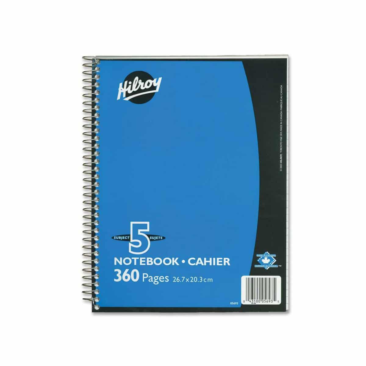 3 perforations. 10-1/2 x 8 po. Couleurs variées. Ligné, 5 sujets. 360 pages