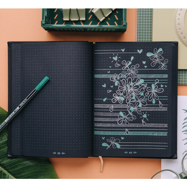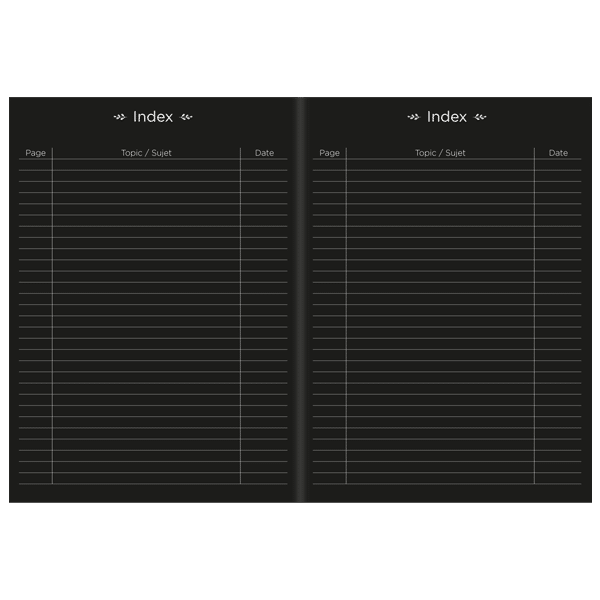 • 5 pages d’index et 215 pages numérotées à l’encre dorée