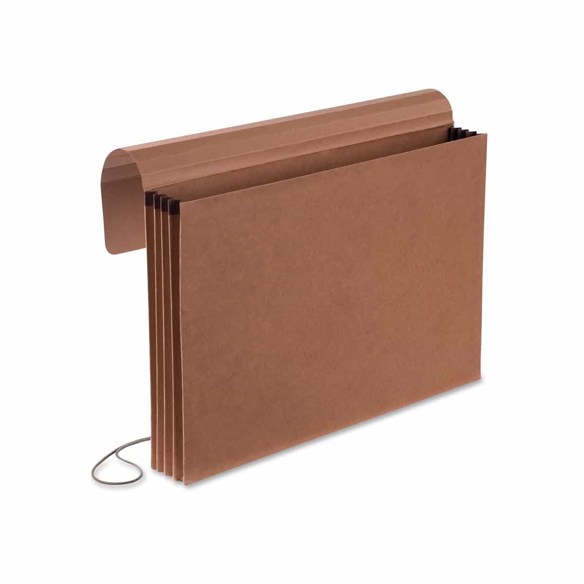 Fibre rouge durable. Rabat fermant par un cordon élastique. Fibre postconsommation : 30 %. 1 compartiment. Exp.: 3-1/2 po (800 feuilles) format légal