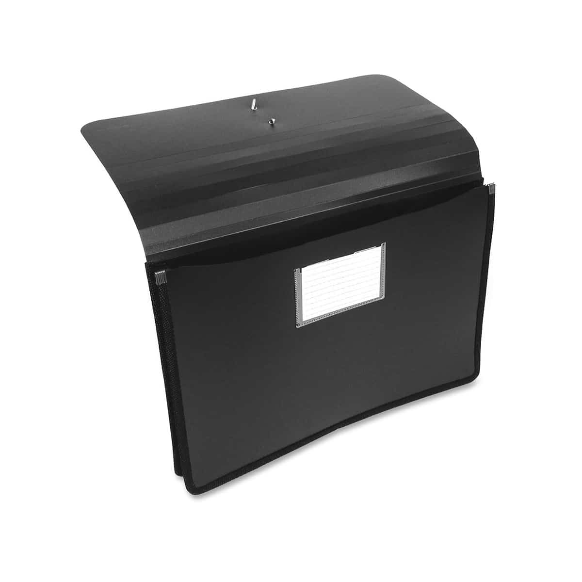Polyvinyle. Expansion de 5-1/4 po. Pour documents de format légal. Bords cousus en tissu renforcé. Noir.