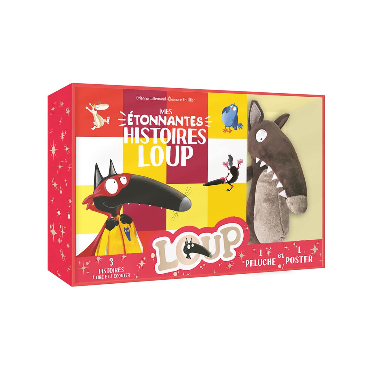 Un coffret combinant trois histoires et une peluche de notre héros préféré !Tout pour revivre, pendant des heures, les aventures de Loup. Trois histoires parmi les plus connues, grand classique du catalogue Loup :- Le loup qui ne voulait plus marcher- Le loup qui voulait être un super-héros- Le loup qui voulait être heureux