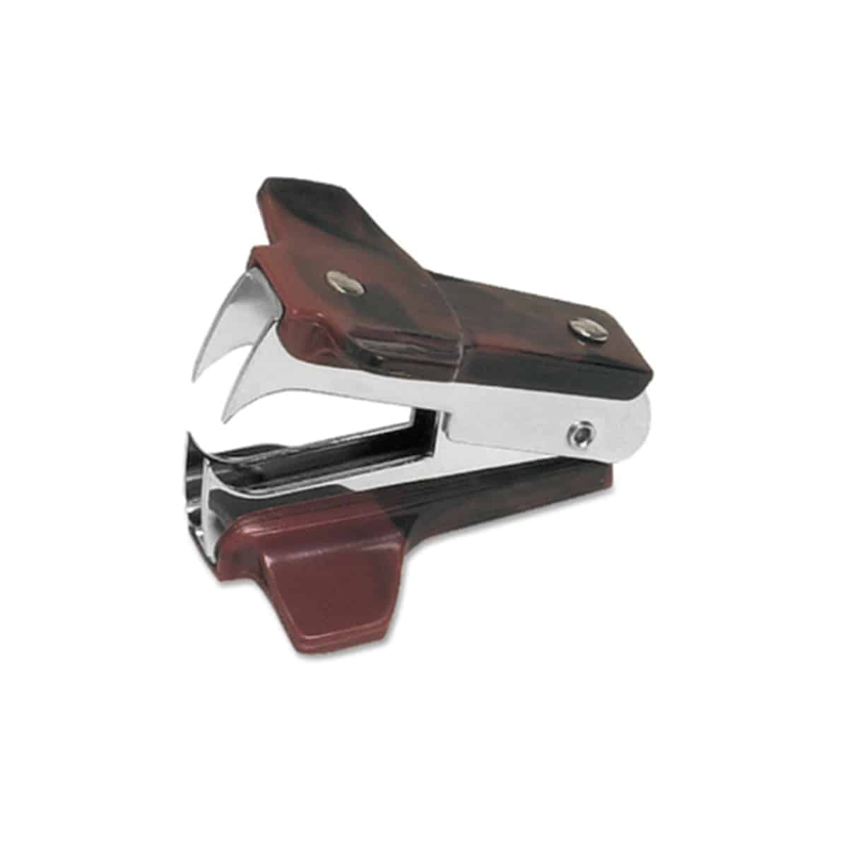 Enlève facilement les agrafes des documents. Taille compacte pour un rangement et une portabilité plus facile. Construction en plastique et en métal. Acajou.