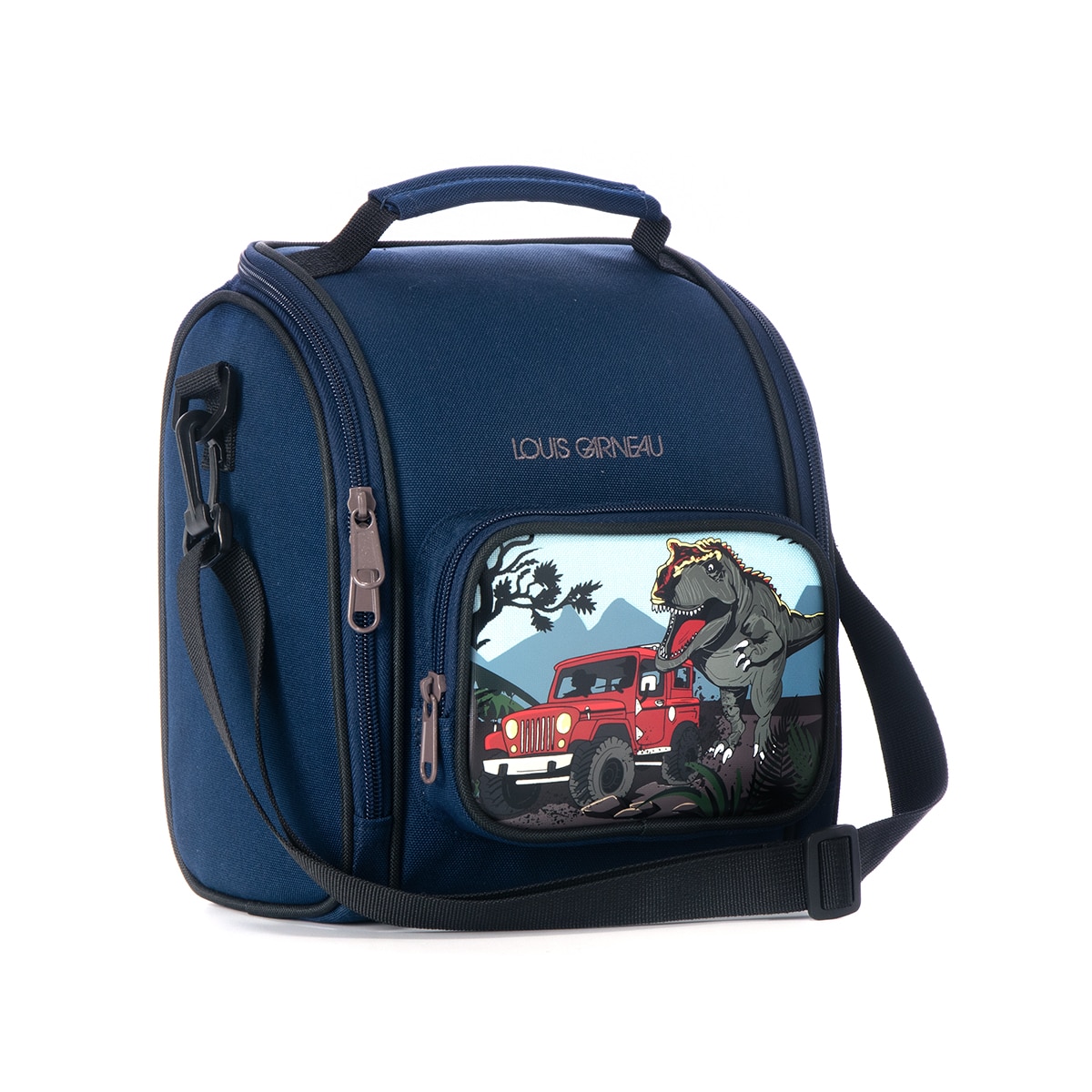 Boîte à lunch isolée à grande ouverture avec pochette à l’avant, intérieur de plastique amovible pour faciliter le nettoyage, courroie incluse. 20x23x16cm. 7.5L