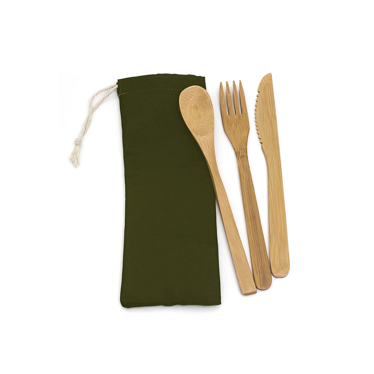 Ensemble de 3 ustensiles en bambou, écologique, étui en tissu facilement lavable