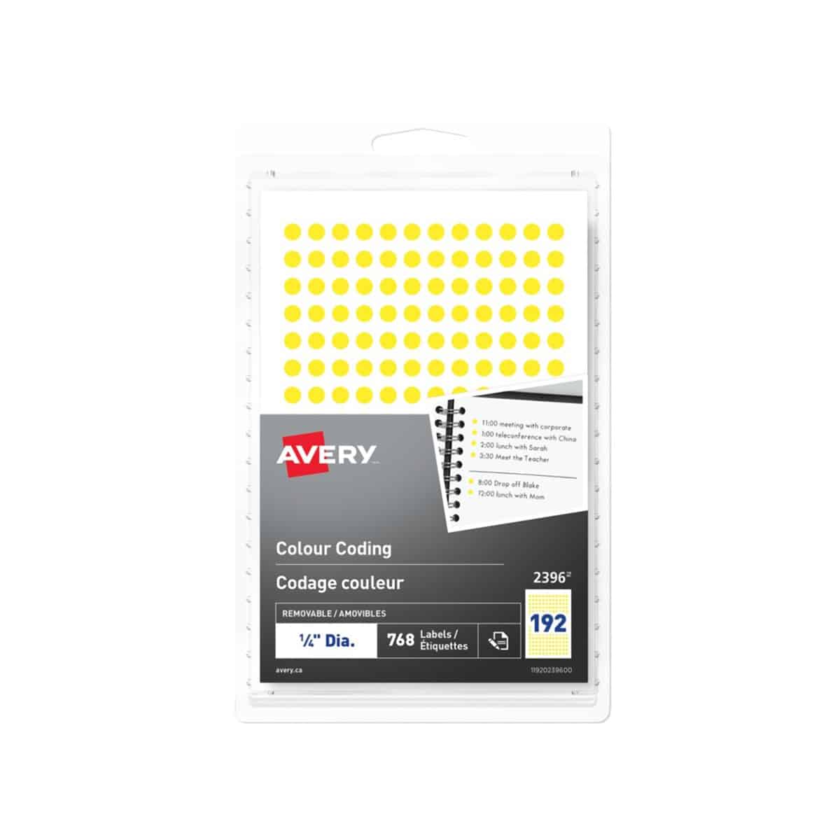 Étiquettes de codage couleur rondes Avery 0.25 po – jaune