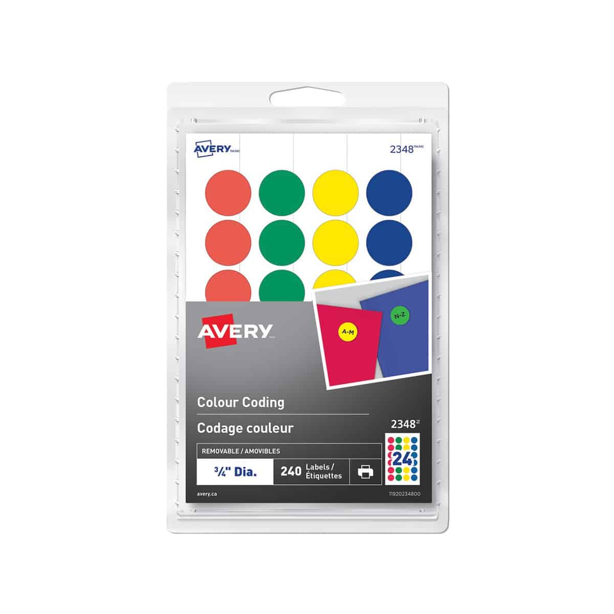 Étiquettes de codage couleur rondes Avery 0.75 po – assortie