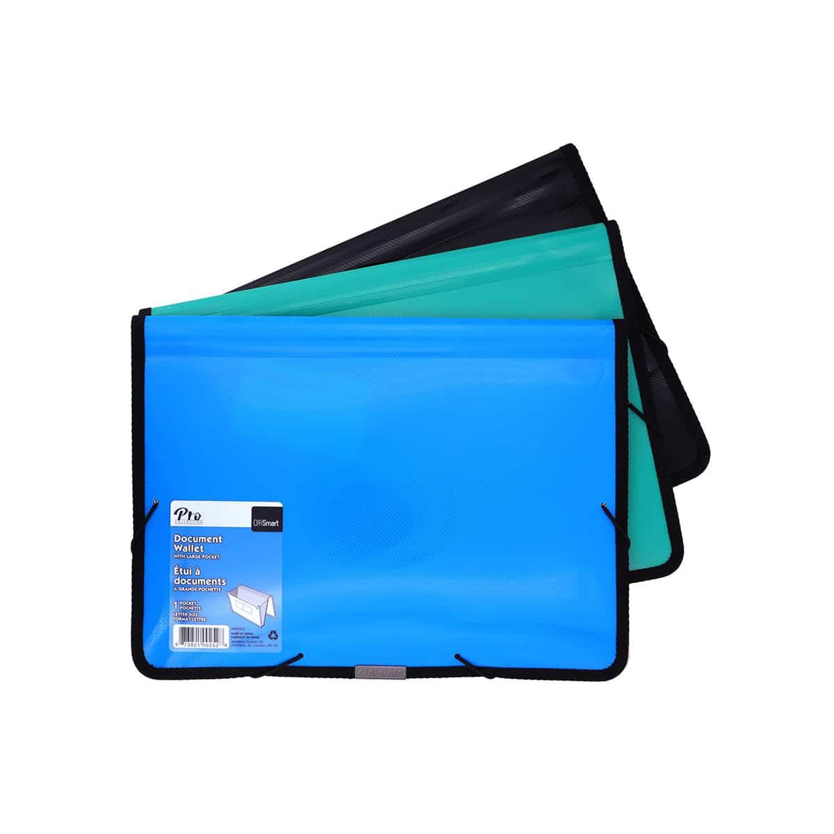 Étui à documents expansible Expansion à 3″ Bords cousus Fermeture avec élastique Format lettre Couleurs assorties