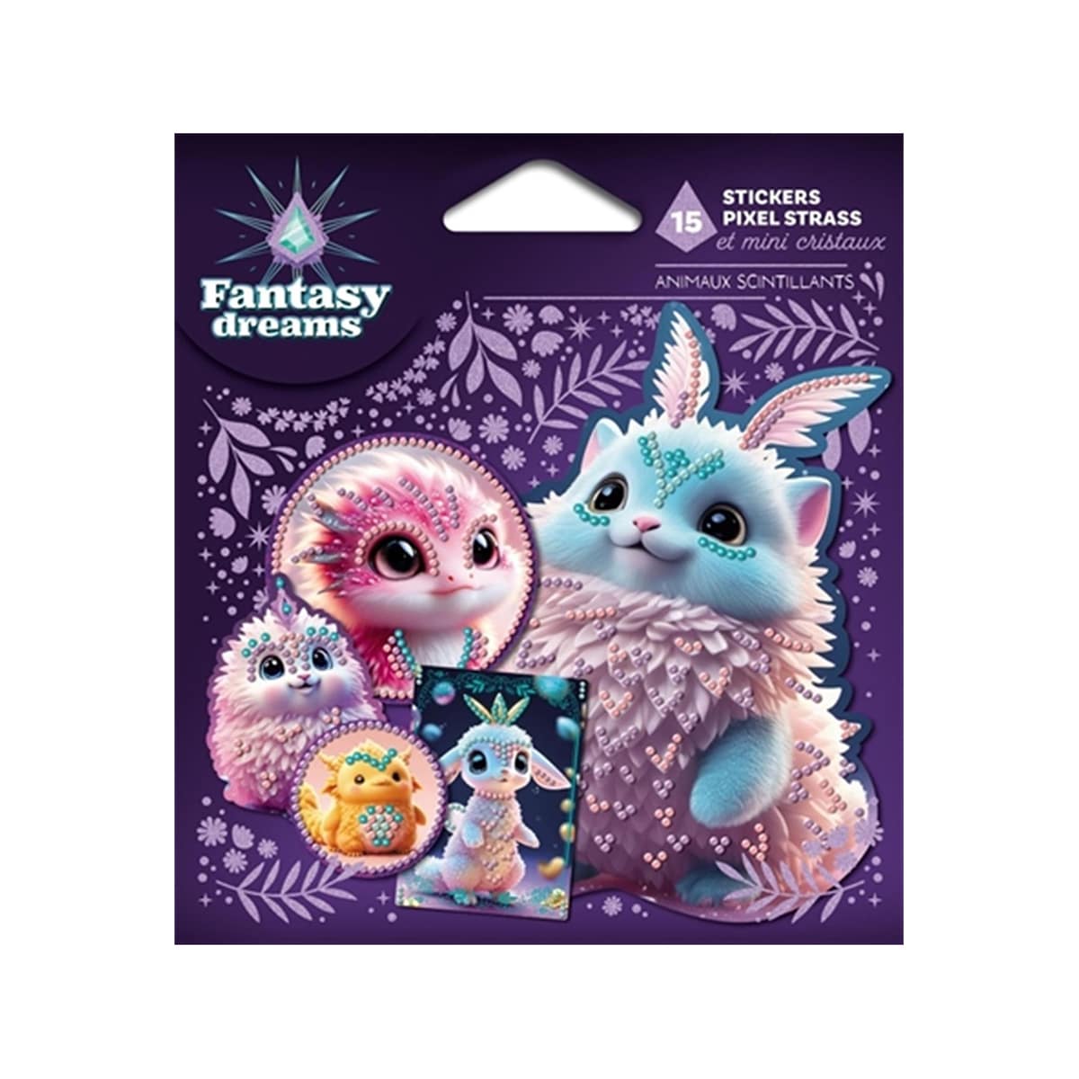 Le nécessaire pour décorer quinze stickers et leur donner du relief grâce aux pixel strass et aux mini cristaux.