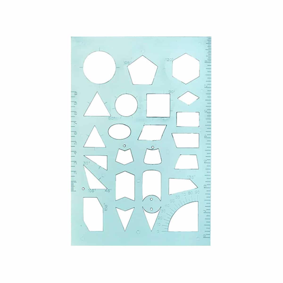 Gabarit précis pour tous vos besoins en géométrie. 24 formes géométriques. Échelonné en graduations métriques et impériales.