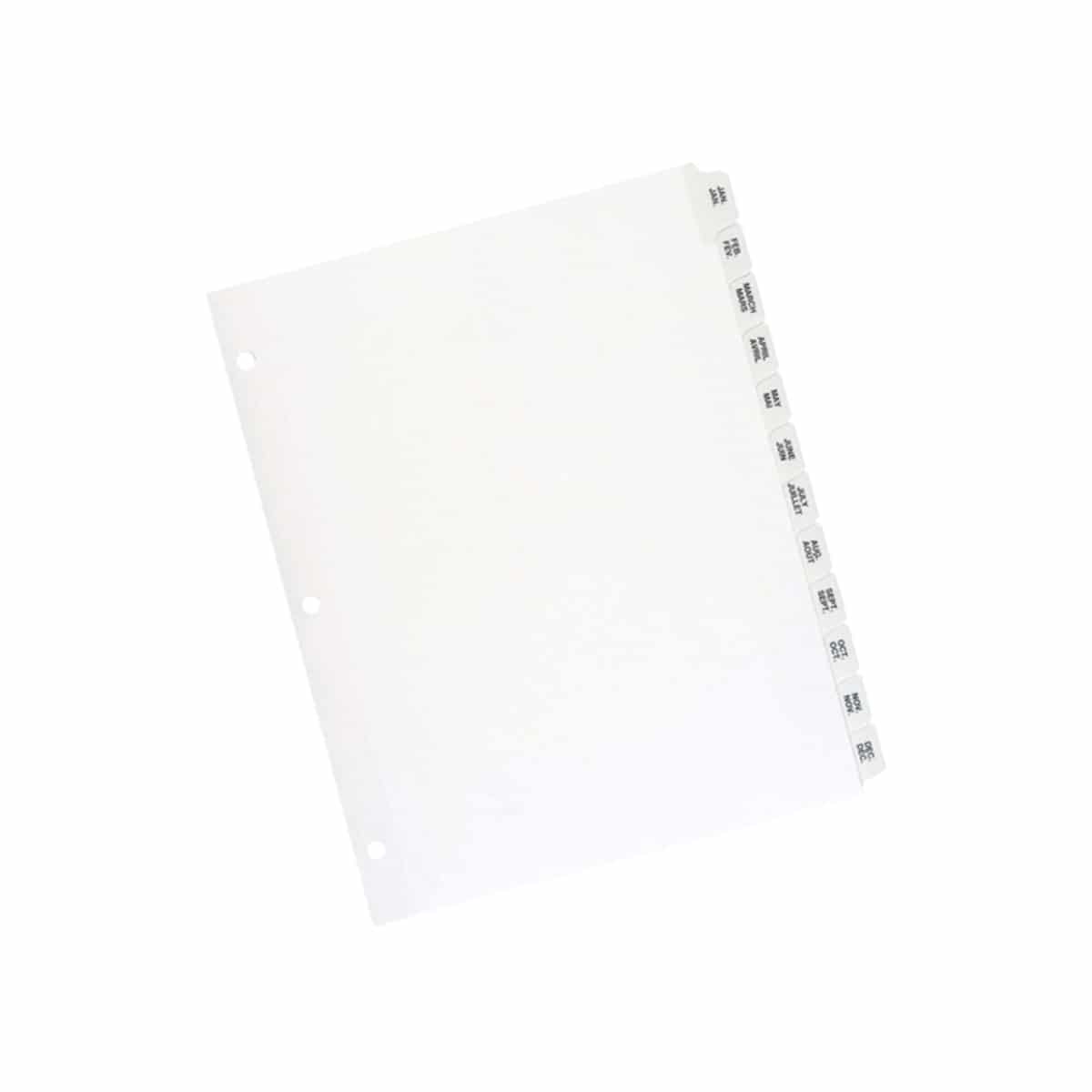 Imprimé Onglet(s) – Mois – Jan-Dec – largeur de l’intercalaire 8,50 po (215,90 mm) x longueur de l’intercalaire 11 po (279,40 mm) – format lettre – PlastiqueRecyclé – Bords renforcés, Onglet renforcé – 26 / jeu