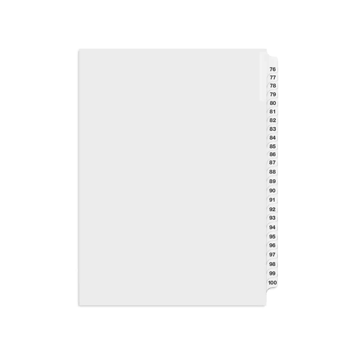 1/25ième coupe. 11 x 8-1/2 po. 1 jeu de numéros séquentiels. Blanc 76 à 100