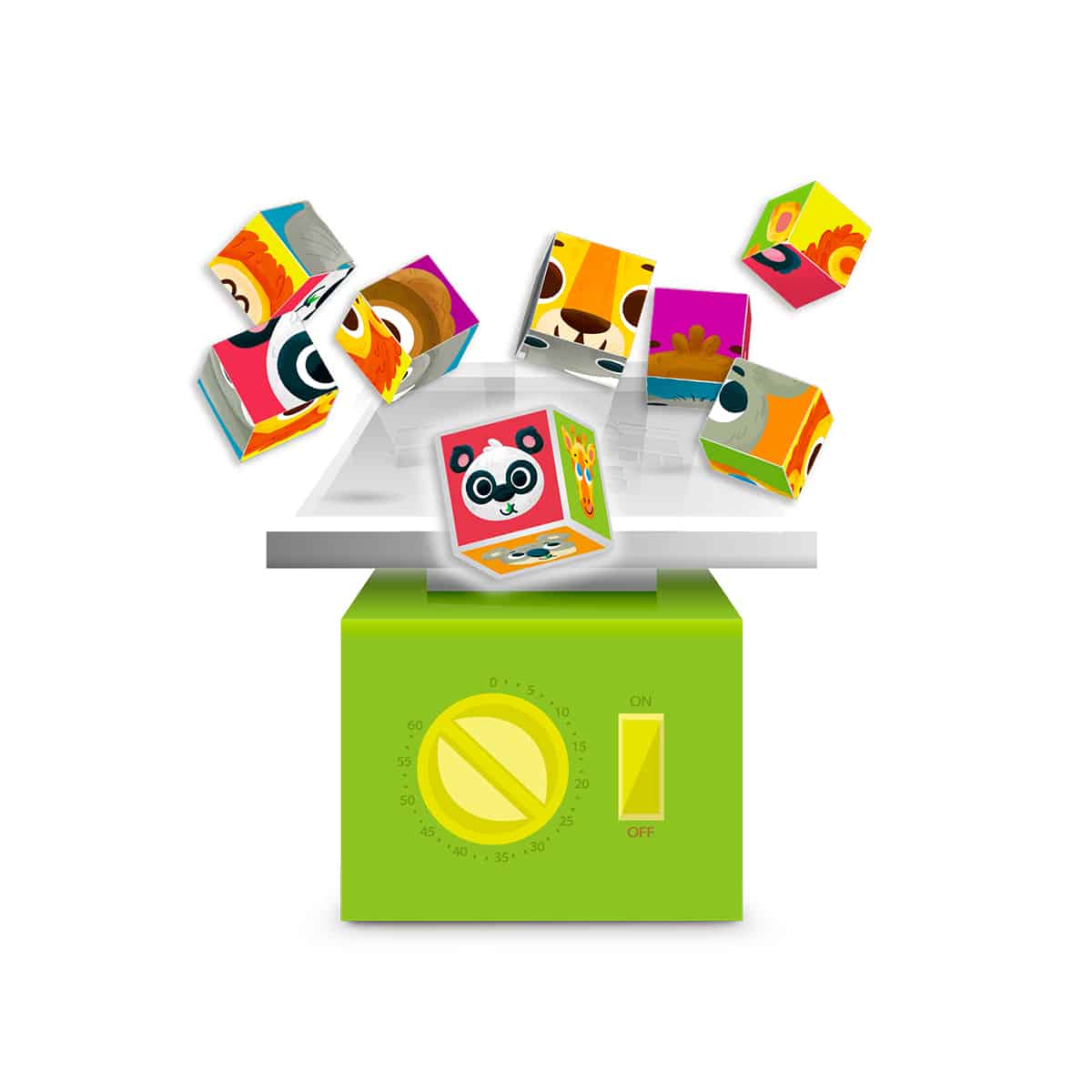 Dépêchez-vous de placer correctement les blocs sur le plateau de jeu! Si vous prenez trop de temps, le ressort du plateau pourrait bien se déclencher…