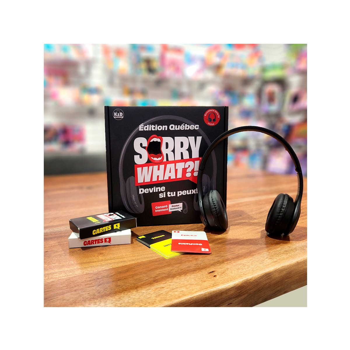 CE QUE CONTIENT LE JEU – 100 cartes-mots, un casque personnalisé, un câble de chargement et des règles simples à suivre—tout ce qu’il faut pour jouer immédiatement!
