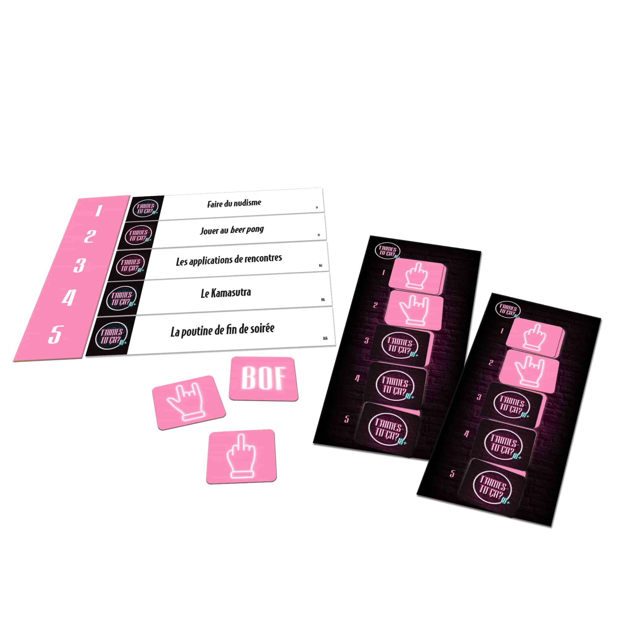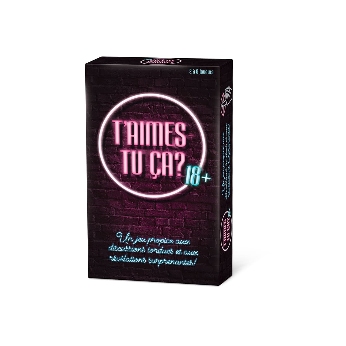 T’aimes-tu ça? est un jeu qui teste la complicité qui règne au sein de duos de joueurs. Pour marquer des points, les coéquipiers doivent placer pour chaque énoncé le même jeton de niveau d’appréciation. Dans cette version 18+, les joueurs devront mettre de côté leur timidité et leur pudeur. Le jeu idéal pour susciter des rires, des discussions tordues, mais surtout des révélations surprenantes!