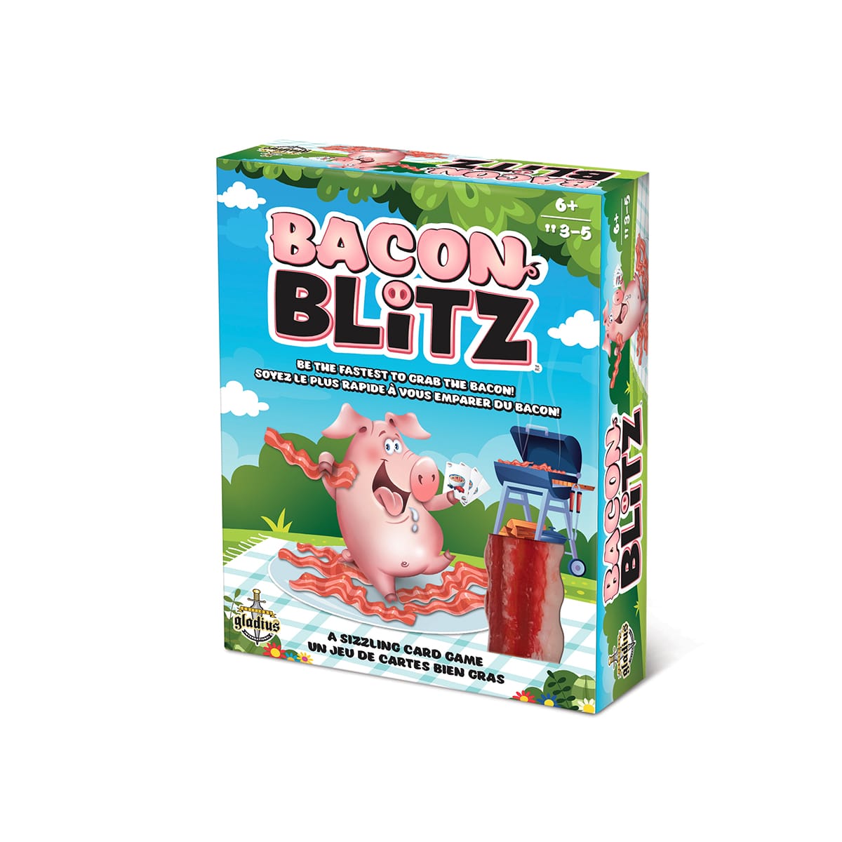 Dans ce brunch enflammé, soyez le plus rapide à récupérer trois cartes-aliments identiques pour vous emparer d’une tranche de bacon! Une fois qu’un bacon est pris, tout le monde doit se dépêcher d’en prendre un : c’est le Bacon Blitz! Ne soyez pas le joueur qui reste sans bacon, car vous recevrez une pénalité!
