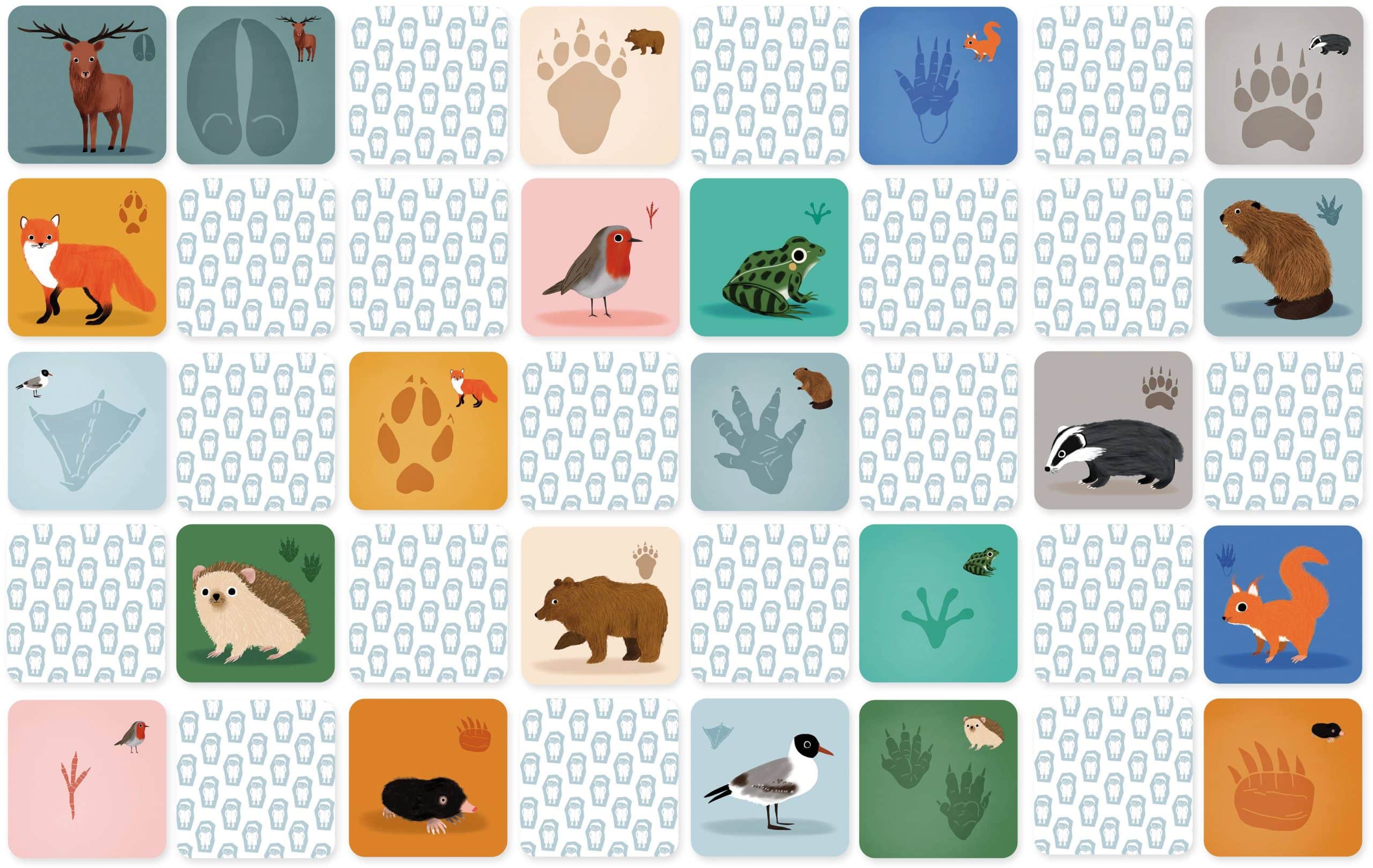 Pars sur la piste d’animaux sauvages en rassemblant les bonnes paires : l’Animal et son Empreinte !