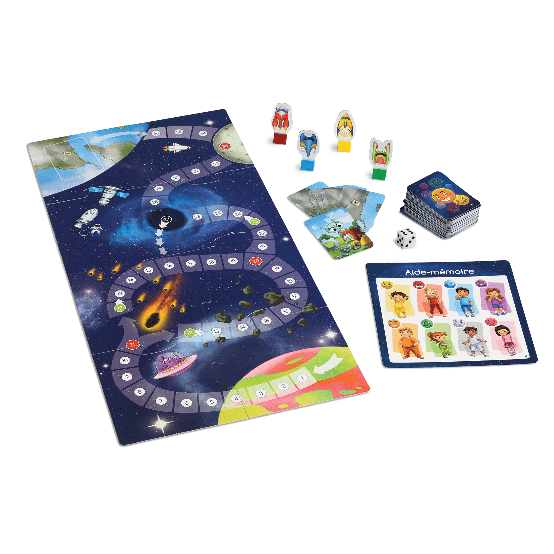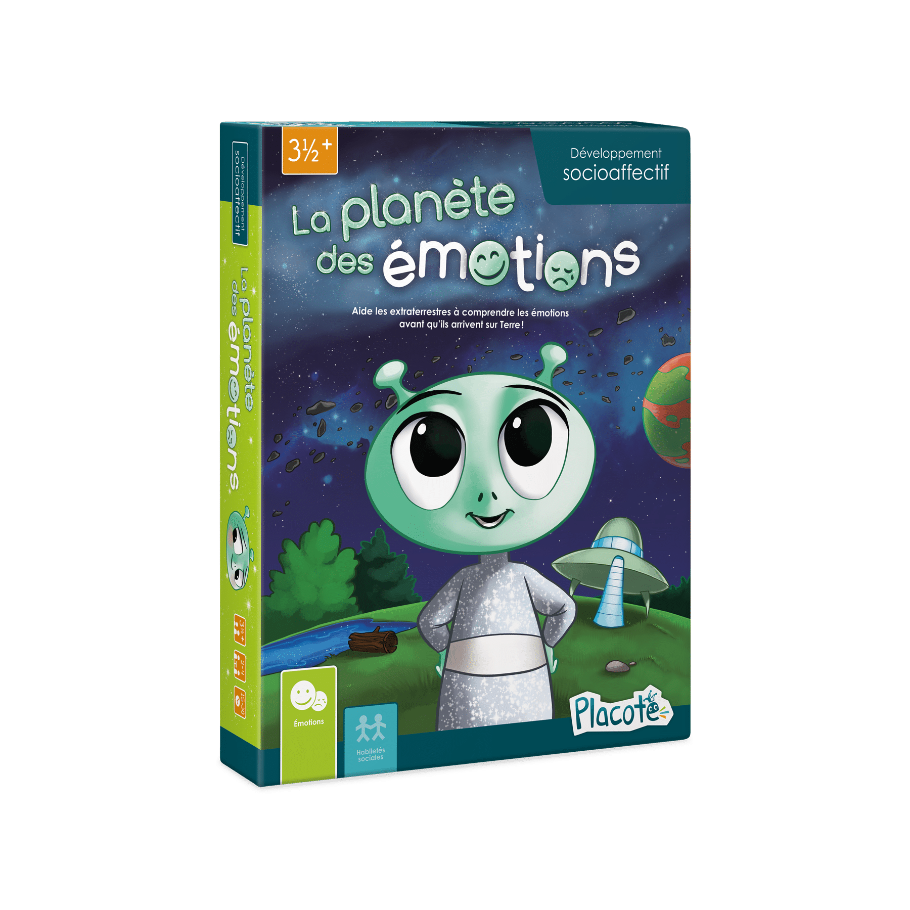 Tu dois montrer aux extraterrestres comment comprendre les émotions, car ils ne savent pas ce que c’est. Aide-les à quitter la planète Padémo pour se rendre sur la Terre et y vivre leur première émotion! Avance en lançant le dé, prends des cartes et devine les émotions ressenties parles personnages illustrés. La planète des émotions est conçu pour aider les enfants de3½ ans à 7½ ans à comprendre les émotions ressenties par plusieurs personnes dans une grande variété de situations, et ainsi favoriser le développement de l’empathie. Ce jeu montre aussi qu’une même situation peut provoquer différentes émotions selon les personnes.