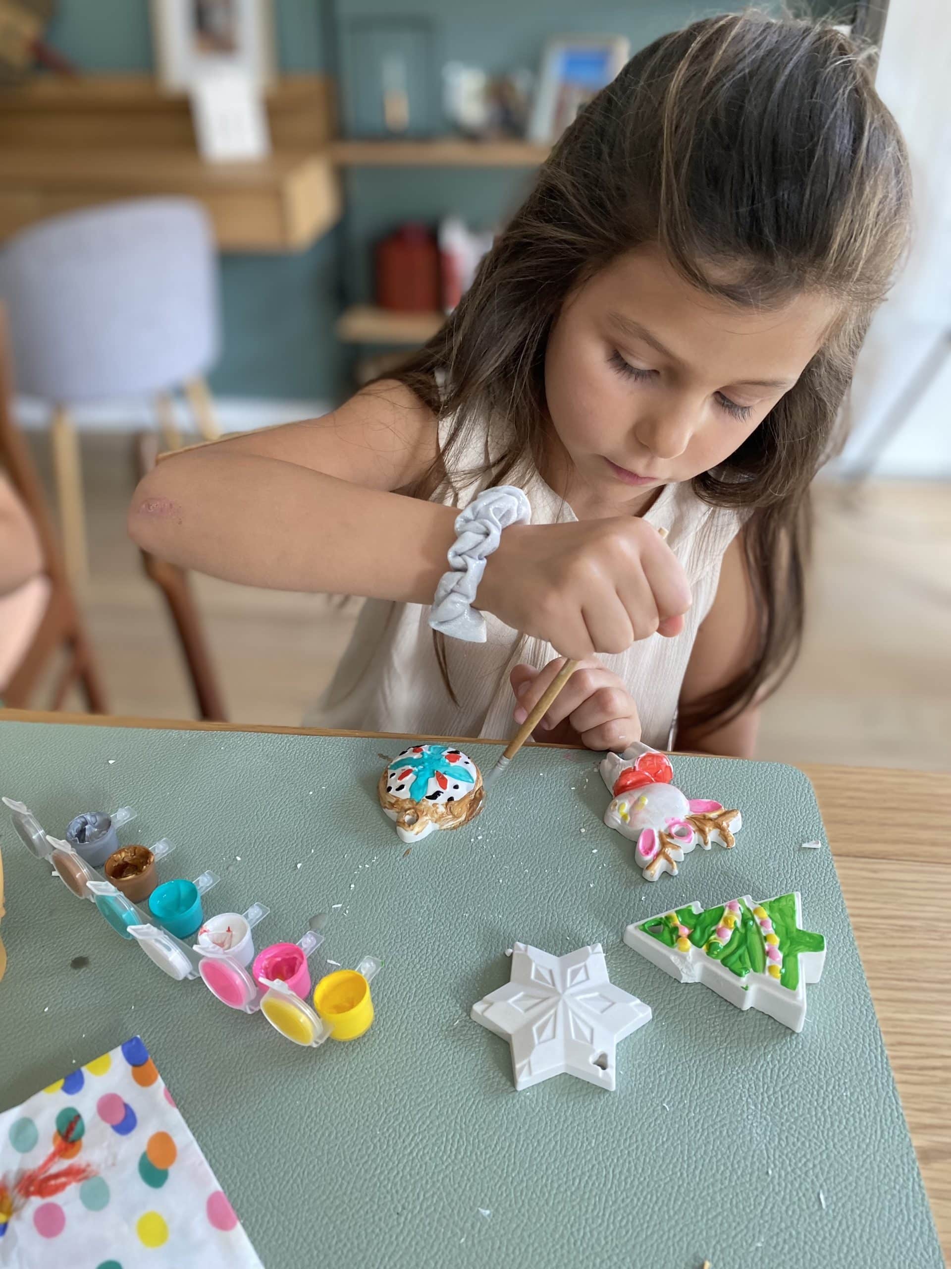 ✓ Un atelier de création mako, pour mouler, démouler et peindre 4 décorations de Noël à suspendre dans son sapin.
