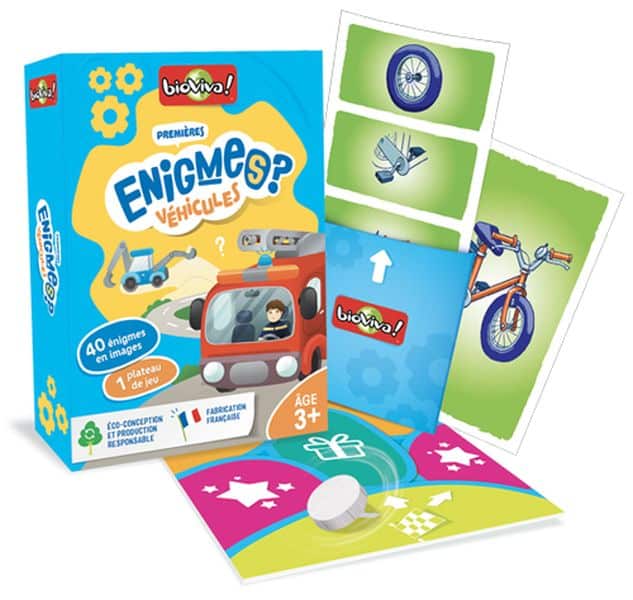 3 indices joliment illustrés et la réponse au dos de la carte: un principe simple qui permet aux jeunes enfants de développer leur langage et leurs capacités d’observation et de déduction.