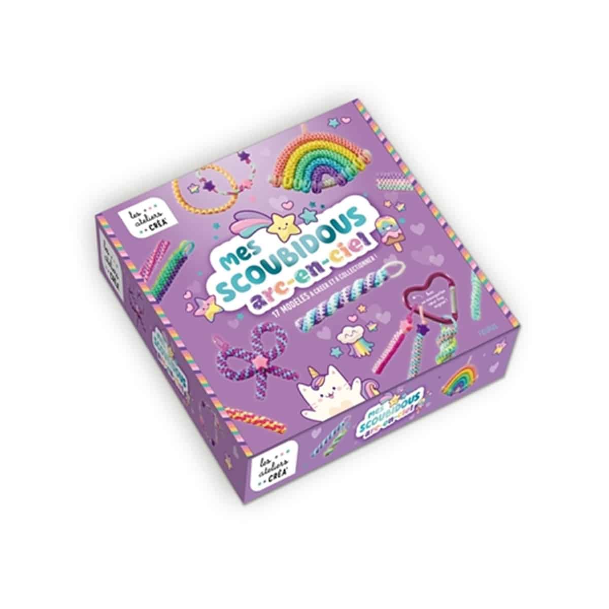 Mes scoubidous arc-en-ciel . Carrés, ronds, rectangulaires, en spirales… Apprends à tresser des scoubidous de toutes les couleurs ! Réalise aussi des grigris kawaii te et même des bracelets ! . 17 modèles expliqués et tout le matériel pour les réaliser ! .