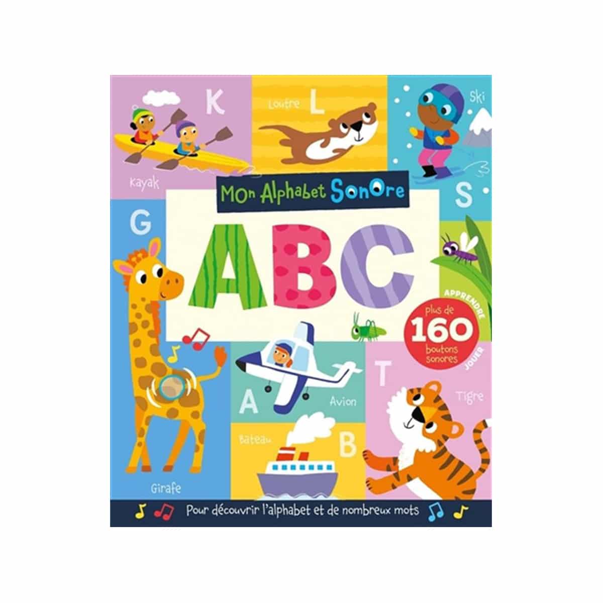 Mon alphabet Sonore . ABC . Les jeunes enfants vont trouver dans ce livre plus de 160 boutons sonores pour découvrir les lettres, ainsi que des jeux de questions/réponses pour apprendre des nouveaux mots de vocabulaire.. Pour apprendre l’alphabet en s’amusant ! .