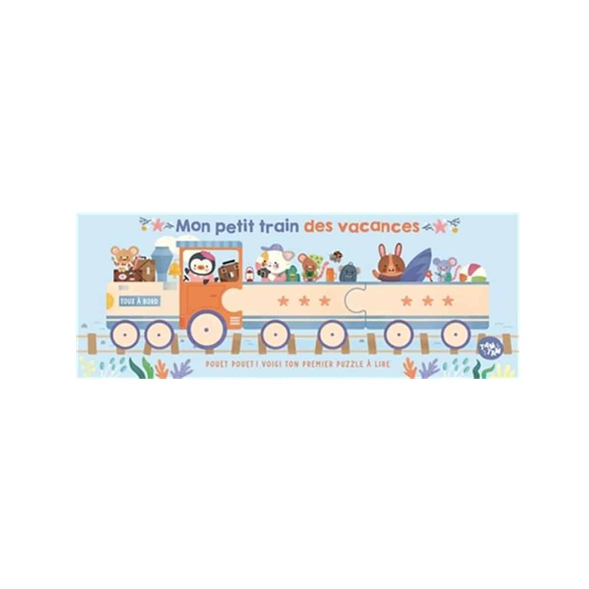 Mon petit train des vacances . Saute dans le joyeux train des vacances et découvre trois charmantes aventures d’animaux. Visite Paris avec Marie la manchote, pars en randonnée avec Charlie la chatte et construis des châteaux de sable avec Lou le lapin.. Les trois adorables livres forment un puzzle à reconstituer pour te créer ton propre train des vacances ! Choisis ton véhicule préféré et lance-toi dans sa lecture..