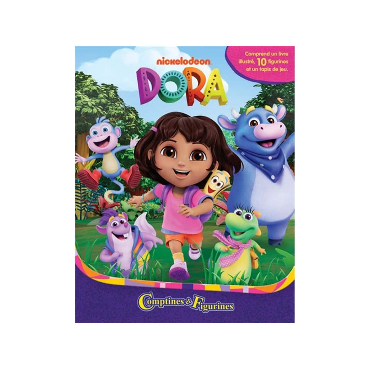 Comprend un livre illustré de 20 cm x 25 cm, 10 jouets en plastique peints et un très grand tapis de jeu de 60 cm x 90 cm. Le tout est intégré dans une boîte-livre pour un rangement facile.