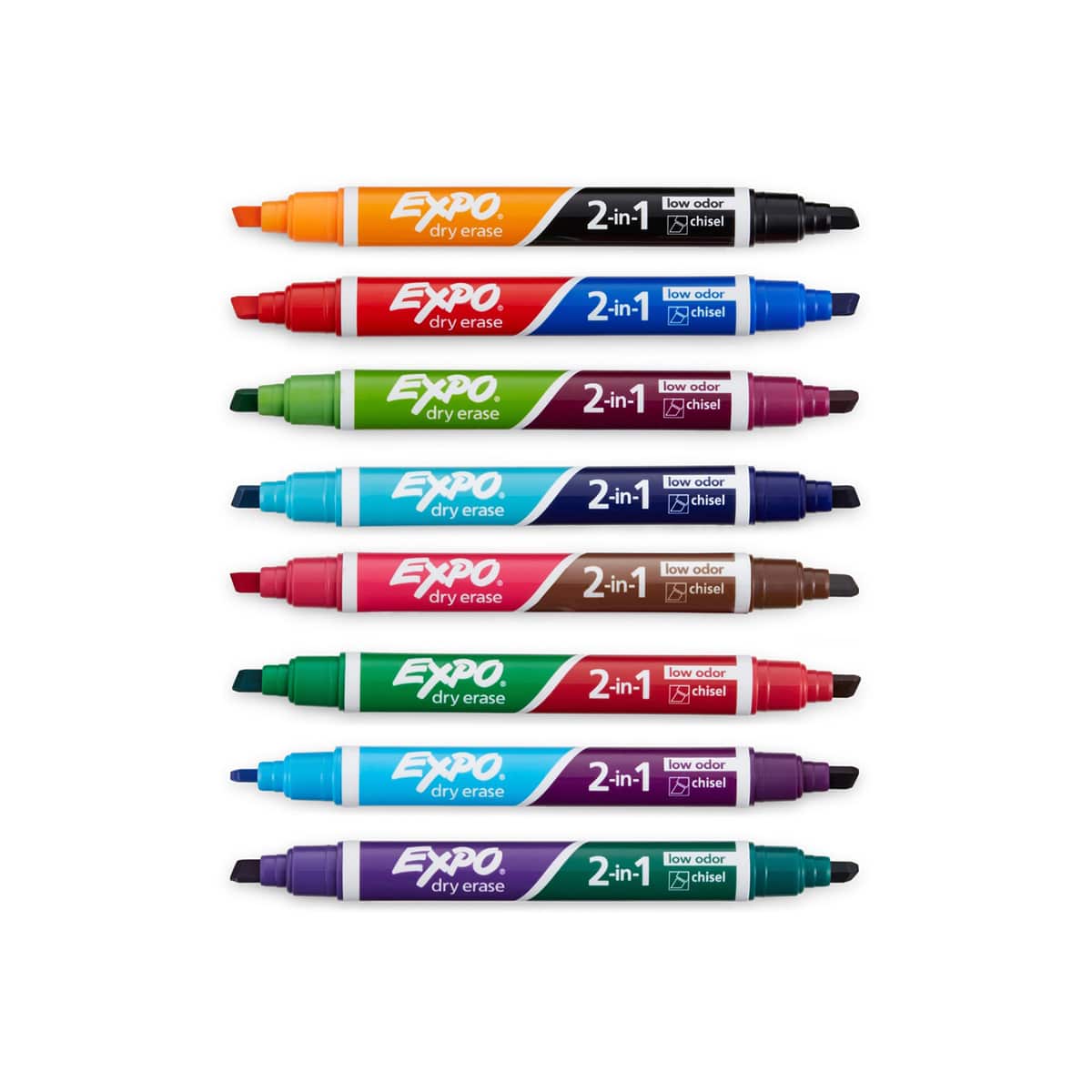 2 couleurs d’encre dans 1 marqueur. À faible odeur, pointe biseautée. Couleurs variées. Paquet de 8 couleurs variées