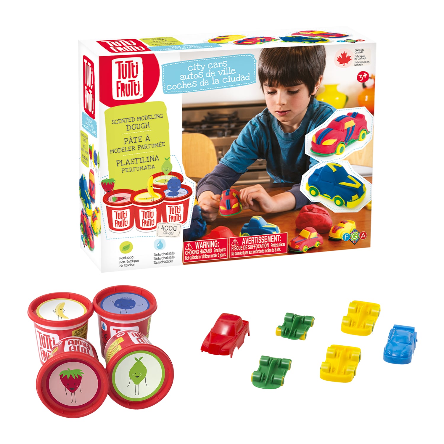 Laissez libre cours à votre imagination ! Choisissez de recouvrir et de décorer les 4 voitures à plateforme en plastique, ou utilisez les 2 moules pour voitures pour réaliser vos créations et roues personnelles. Le coffret idéal pour les fans de voitures, leurs belles créations pourront participer aux plus grandes courses !