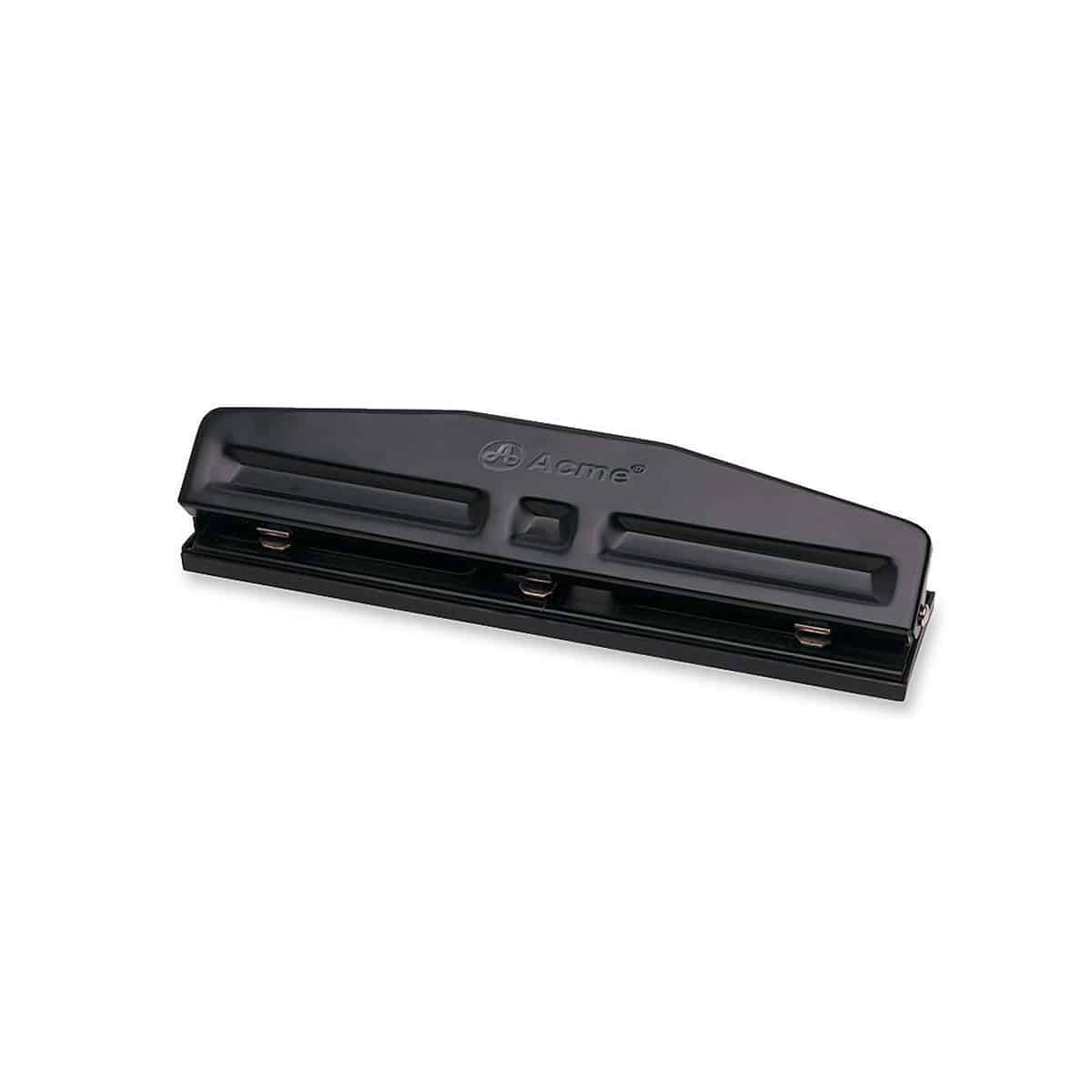 Pour travaux légers. Perfore 3 trous de 1/4 po. de diamètre et jusqu’à 12 feuilles. Centre réglable. Noir.