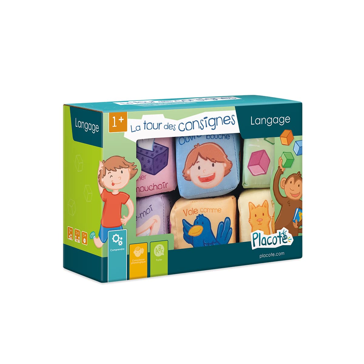 La tour des consignes conçu pour aider les enfants de 1 an à 2½ ans à comprendre des consignes simples. Puisque chacun des six dés illustre une thématique différente, le jeu permet de développer la compréhension de consignes variées.