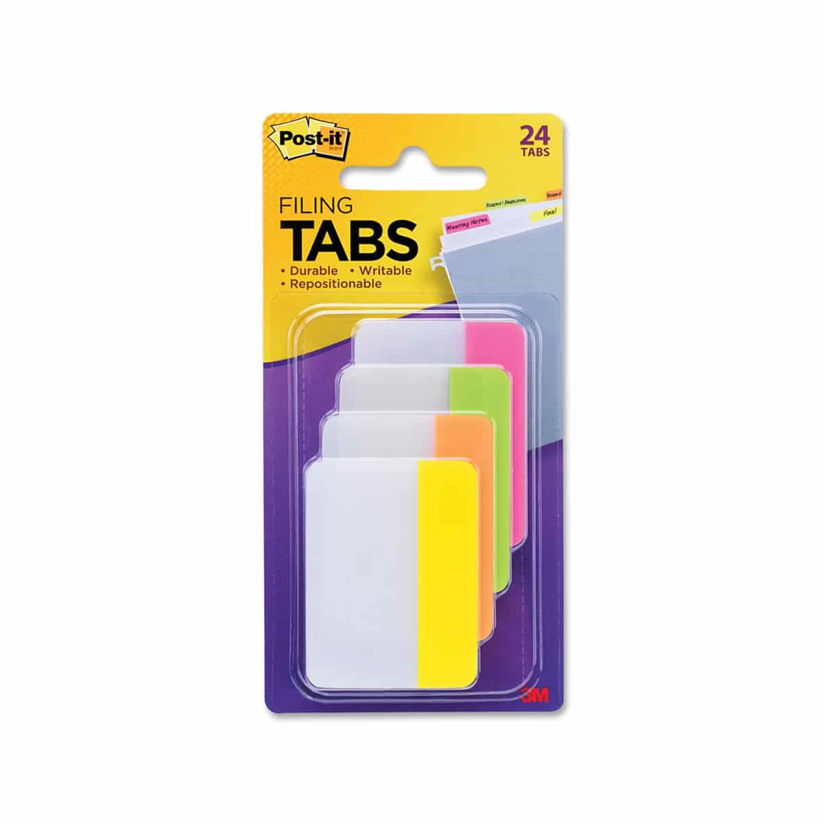 Grande surface parfaite pour organiser les catalogues, dossiers et chemises. Durables et repositionnables. Largeur de 2″. Onglets en 4 couleurs. Paquet de 24. couleurs vives