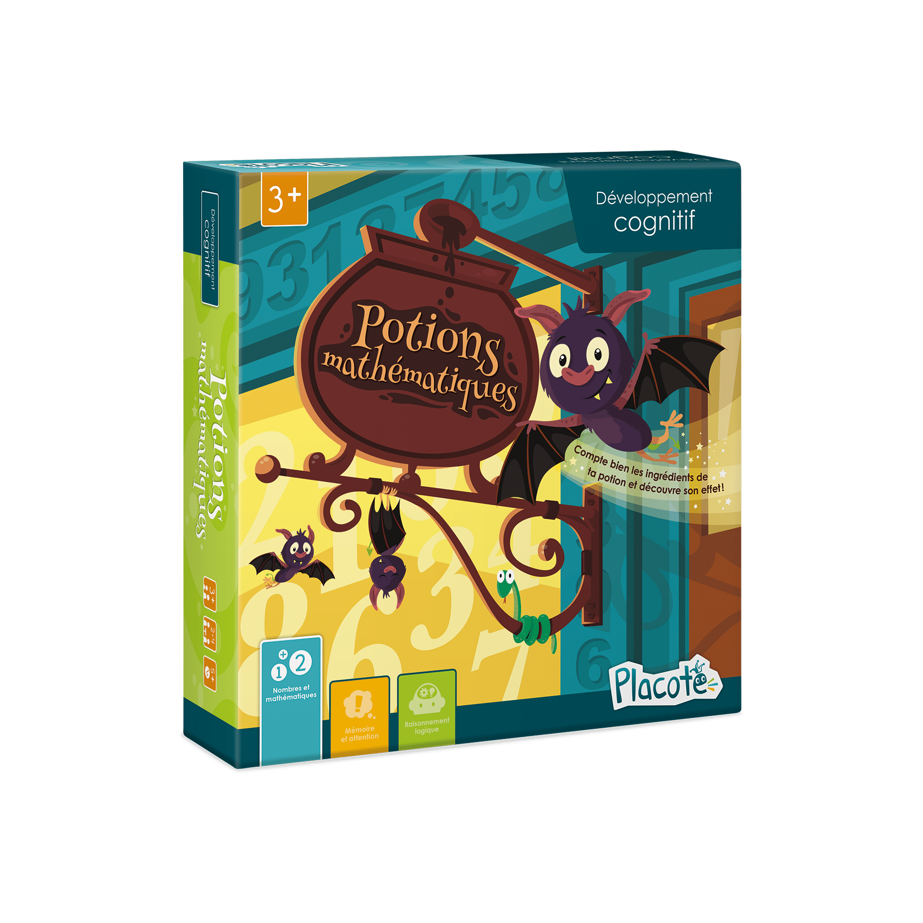 Transforme-toi en apprenti sorcier, sors ton grimoire et suis bien la recette de potion! Pour y arriver, tu devras bien compter. Lorsque tu auras terminé, tu pourras partager ton drôle de mélange avec tes amis testeurs: la chauvesouris, le hibou, le serpent et l’apprenti magicien… Tu verras, ça leur fera de l’effet! Mais n’aie crainte, ce sera temporaire! Potions mathématiques est conçu pour aider les enfants de 3 ans à6½ ans à apprendre à compter et à reconnaitre les nombres écritsde1 à 10. Le fait d’avoir à dénombrer des ingrédients farfelus comme des bananes pourries et des chaussettes qui puent les motive dans leur apprentissage.
