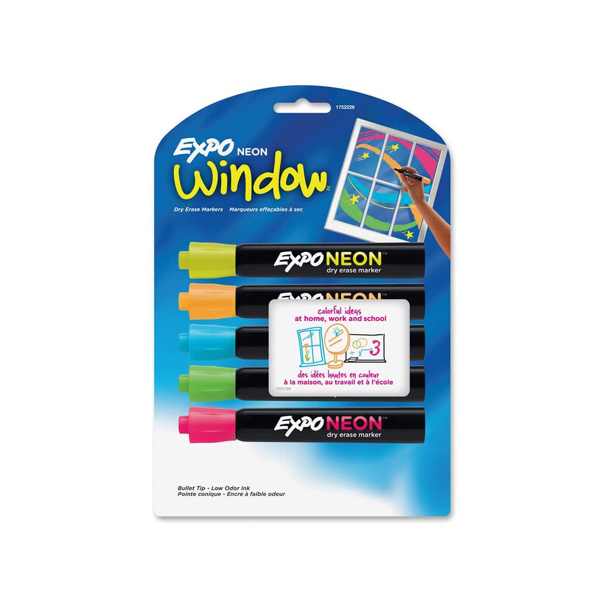 Pour les surfaces effaçables à sec noires et blanches. Peut également être utilisé sur des surfaces non-poreuses (verre, fenêtres, miroirs). Faible odeur. Pointe conique. Paquet de 5. Couleurs variées.