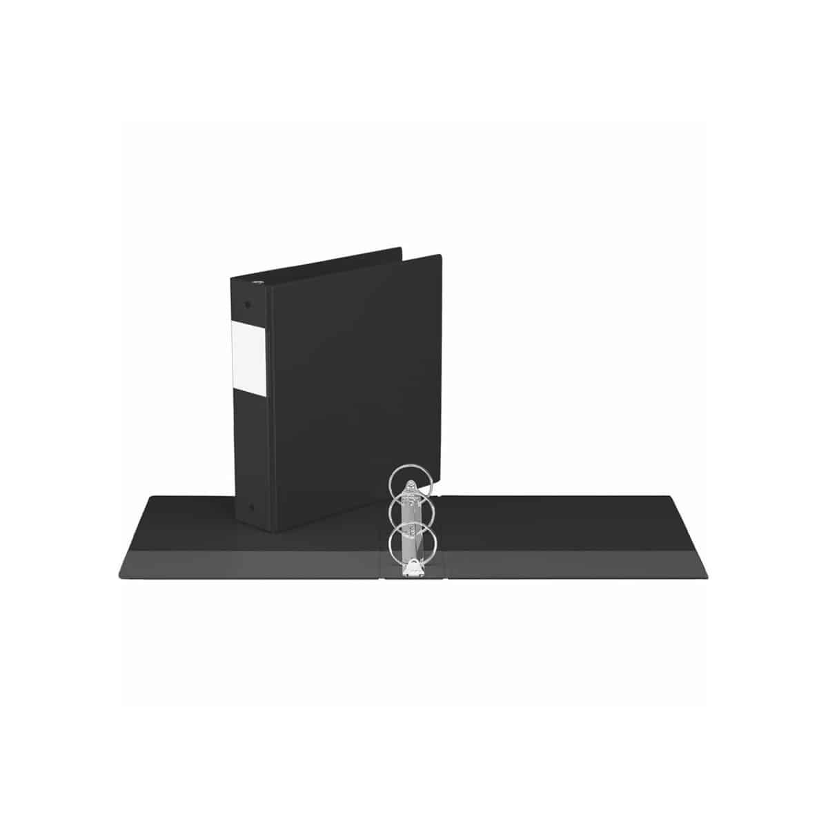 Une reliure SANS PVC. Pochettes transparentes à l’intérieur de la couverture avant et arrière ce qui permet de protéger les documents et de les identifier facilement. Porte-étiquette pleine largeur au dos. Fabriqué au Canada. 2 po. noir