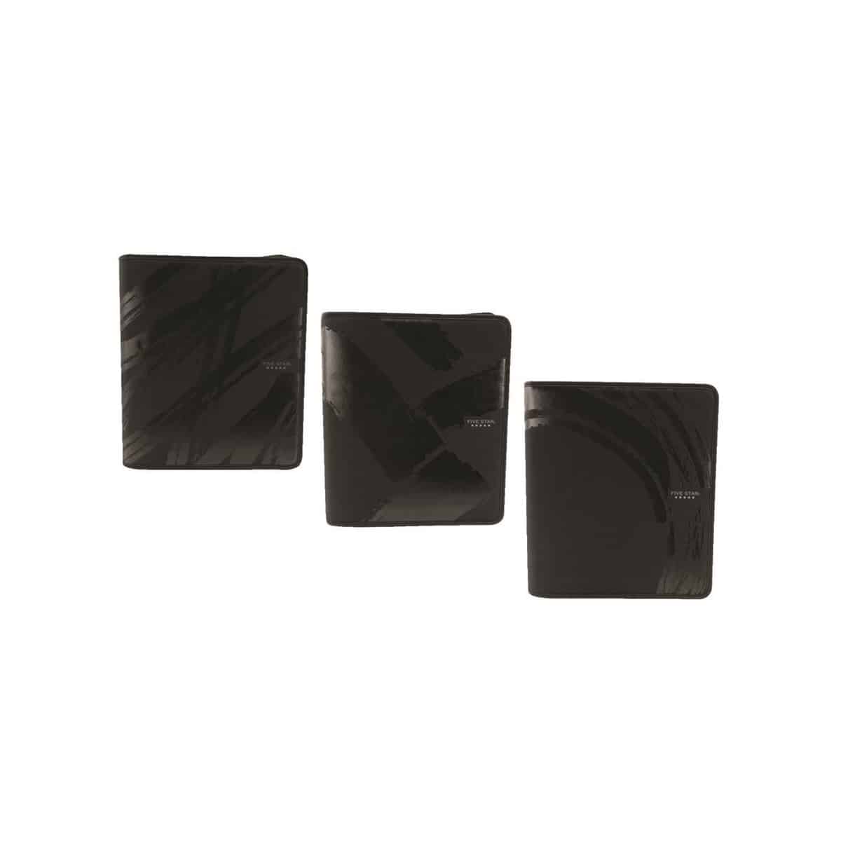 Reliure à 3 anneaux de 2 po Five Star® noir sur noir avec fermeture à glissière. Classeur expansible à 3 pochettes pour ranger les papiers. 3 modèles assorties. 13 po x 12 po.