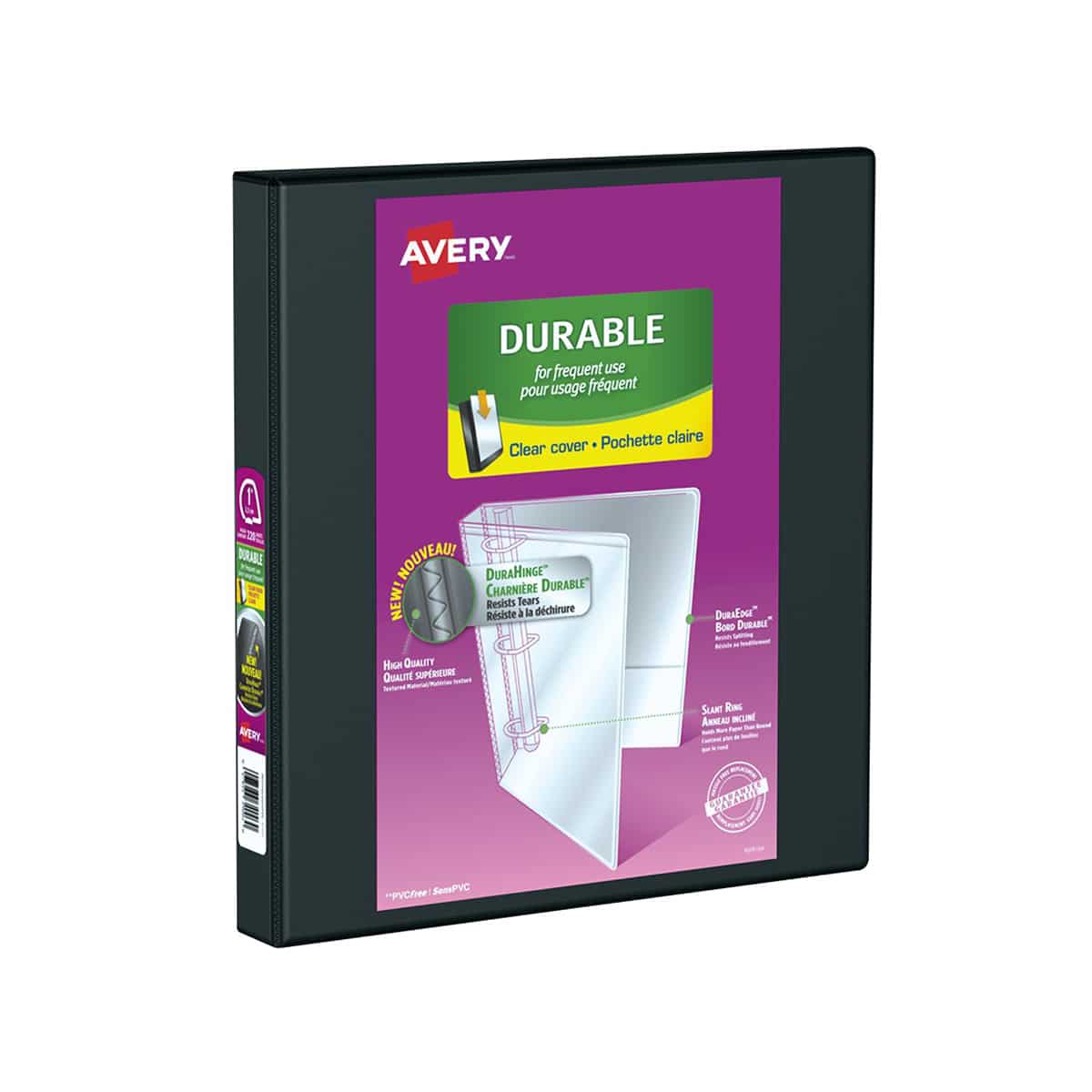 Fabrication durable en plastique sans PVC pour résister aux fréquentes consultations. La conception DuraHinge est plus forte, dure plus longtemps et résiste aux déchirures. La fonctionnalité DuraEdge rend les côtés et le dessus plus souple pour résister séparation. Un film de texture profonde offre une finition lisse à motif de toile pour une apparence de haute qualité. Les panneaux larges couvrent complètement les intercalaires standard et pochettes protectrices. Deux pochettes intérieures. Format lettre.