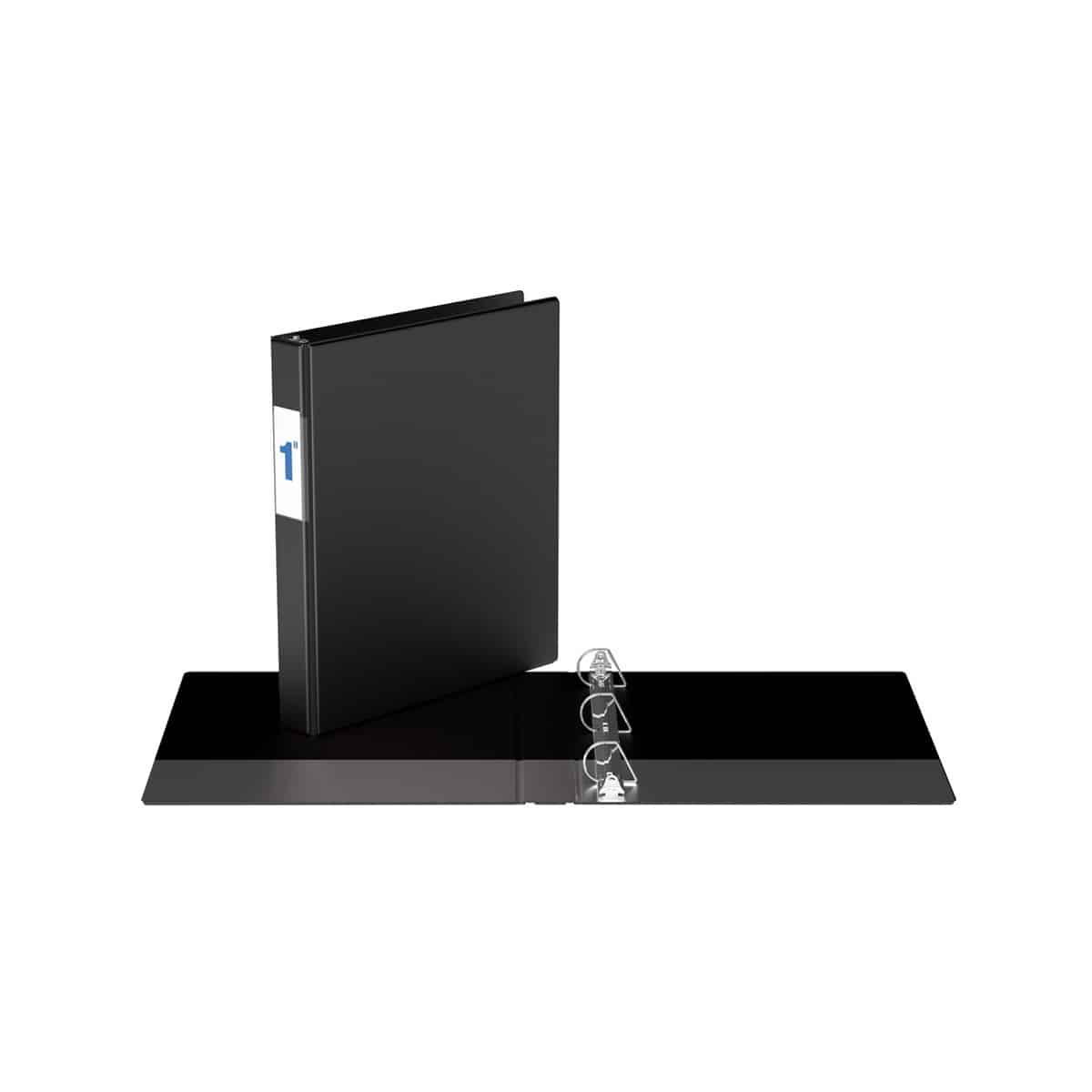 Format lettre. Porte-étiquette sur le dos. Double déclencheurs. 2 pochettes intérieures. Sans PVC. 1 po noir