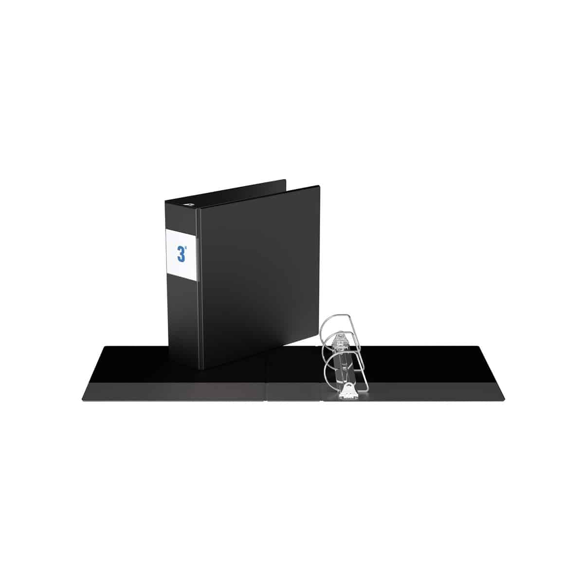 Format lettre. Porte-étiquette sur le dos. Double déclencheurs. 2 pochettes intérieures. Sans PVC. 3 po noir