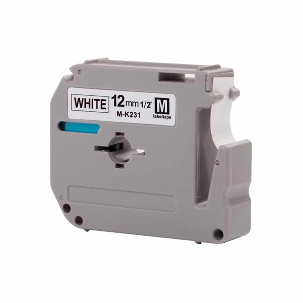 Non laminé. Pour usage général à l’intérieur. Compatible avec appareils P-Touch utilisant les rubans M et MK. 12 mm noir sur blanc