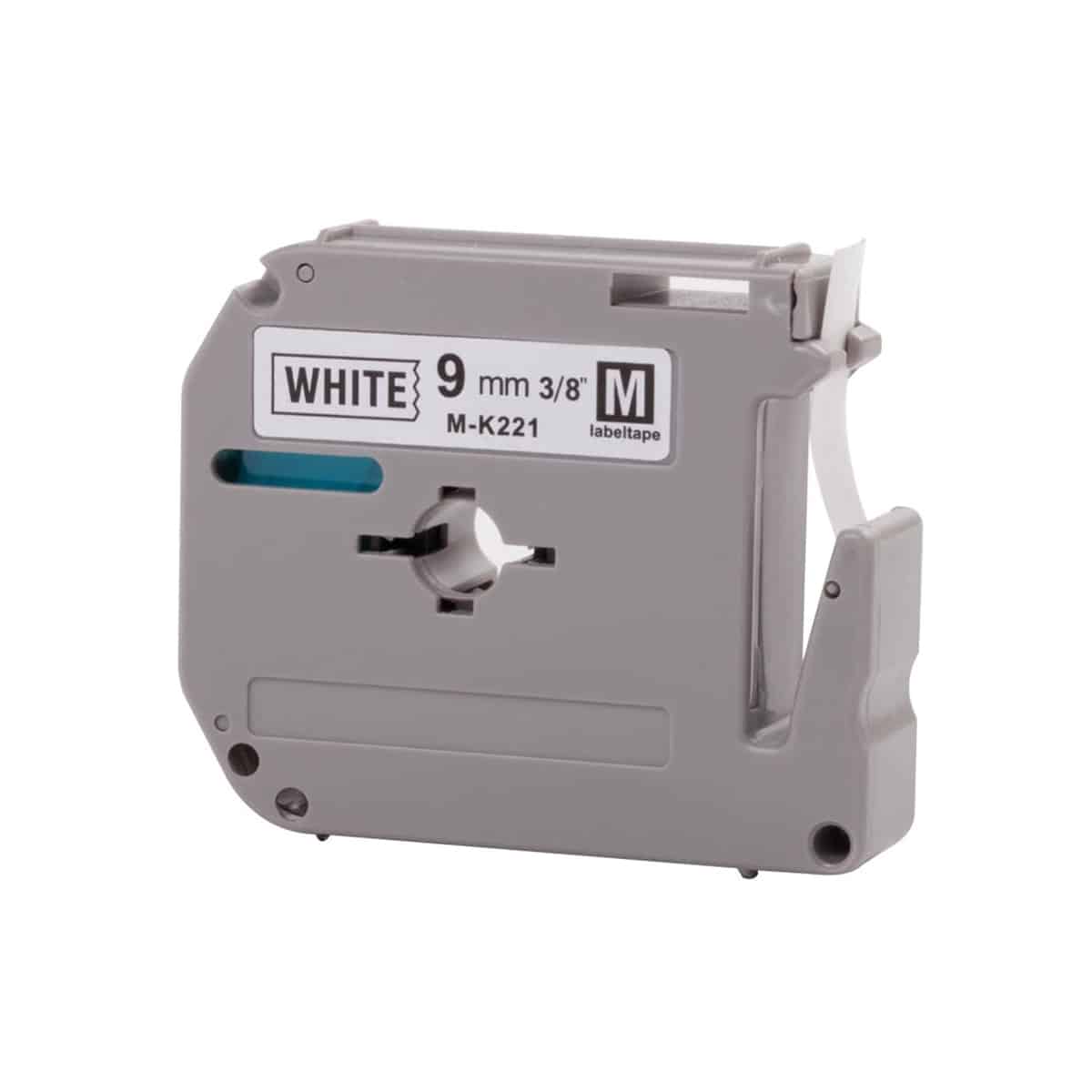 Non laminé. Pour usage général à l’intérieur. Compatible avec appareils P-Touch utilisant les rubans M et MK. 9 mm noir sur blanc