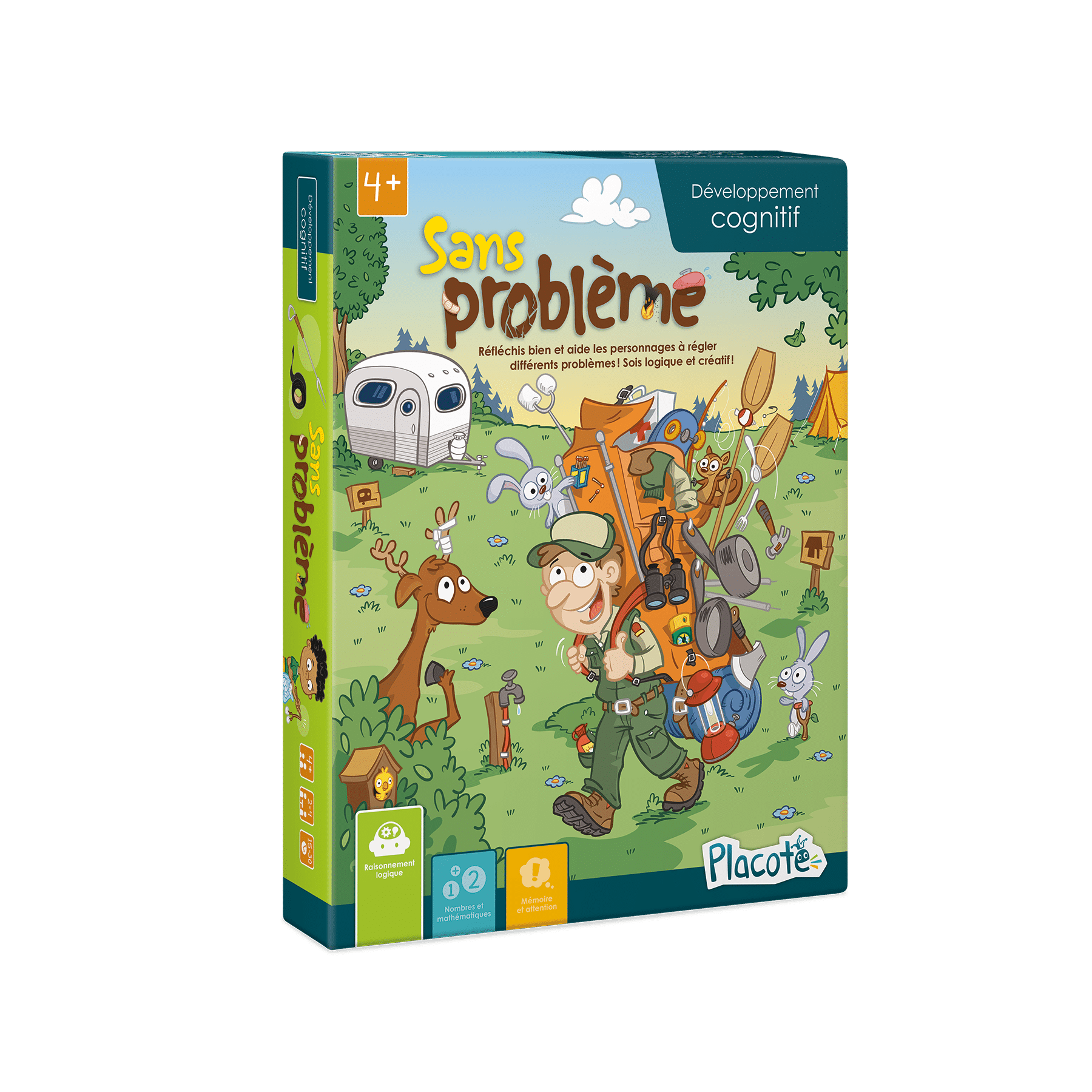 Il n’y a pas de problèmes, il n’y a que des solutions! En tant que garde parc, parcours le camping ou la station de plein air avec quelques objets et tente de les utiliser pour régler les problèmes des personnages autour de toi. Ta mission sera accomplie lorsque tu n’auras plus d’objets en main! Sans problème est conçu pour aider les enfants de 4 à 9 ans à réfléchir à des problèmes qui peuvent se présenter dans la vie courante. Le jeu leur permet d’envisager différentes solutions pour un même problème. Il les amène ainsi à faire preuve de logique, mais aussi à penser «en dehors de la boite».